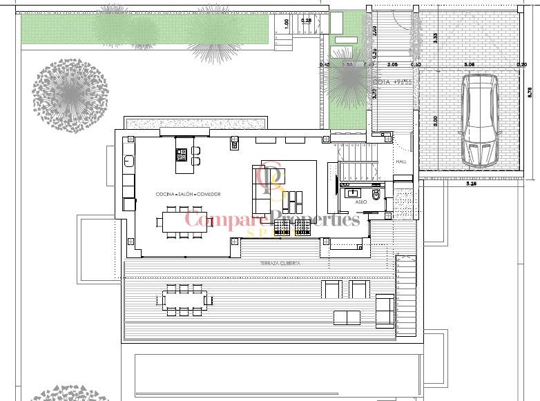 Im Untergeschoss befinden sich ein Lagerraum, eine Waschküche und eine Toilette. Es wird auch möglich sein, auf Anfrage eine Erweiterung von mehr als 120m2 für verschiedene Nutzungen (Fitnessraum, Kino, Schlafzimmer...) im Untergeschoss zu machen.