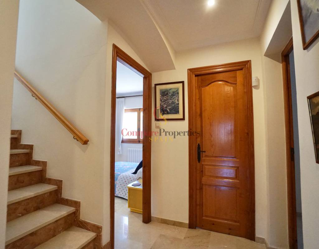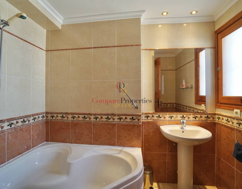 Die Hauptebene öffnet sich in einen Eingangsflur und ein helles Wohn-/Esszimmer mit Flügeltüren, die zu einer schönen Naya führen, mit viel Platz für Sofas und einen Esstisch, perfekt zum Essen im Freien oder einfach zum Entspannen und Genießen der fabelhaften Aussicht auf Moraira und das Meer. Die separate Küche ist geräumig und voll ausgestattet, mit Zugang zu einer weiteren Terrasse. Auf dieser Ebene finden Sie auch 3 Doppelschlafzimmer, alle mit Einbauschränken, 2 mit en-suite Badezimmern und ein separates Duschbad.