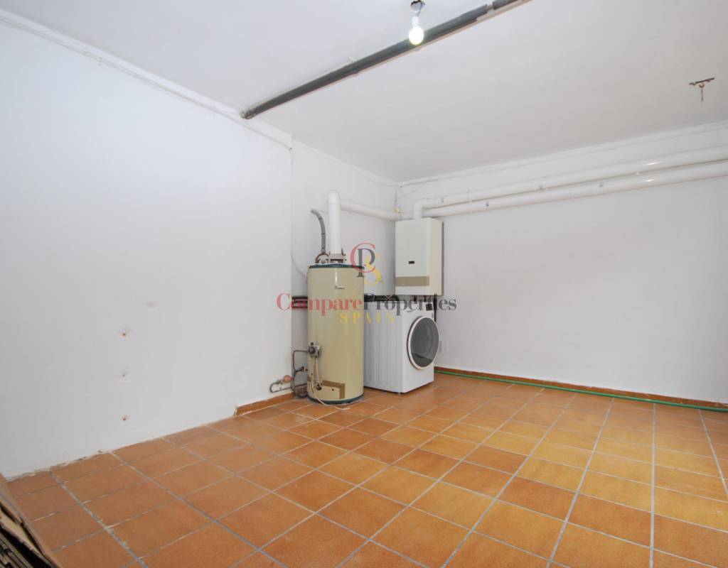 Wenn Sie die Villa im Erdgeschoss betreten, finden Sie einen schönen Flur, von dem aus Sie Zugang zum Essbereich und zur offenen Küche haben, von der aus Sie Zugang zur großen (teilweise überdachten) Terrasse, zum Pool und zum Gartenbereich haben. Im Erdgeschoss befinden sich auch ein Schlafzimmer und ein Badezimmer.