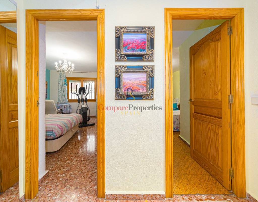 Die Eingangstür führt in den Flur, wo sich auf der linken Seite eine Diele mit einem großen Doppelkleiderschrank mit Rollladentüren befindet. Bevor man jedoch den Flur durchquert, befindet sich vor der Eingangstür eine Glastür, die in einen Bereich führt, in dem sich zwei Doppelschlafzimmer und ein großes Badezimmer mit einer großen Dusche befinden. Dieses Badezimmer und eines der Schlafzimmer sind mit breiten Türen für den Zugang mit dem Rollstuhl ausgestattet.