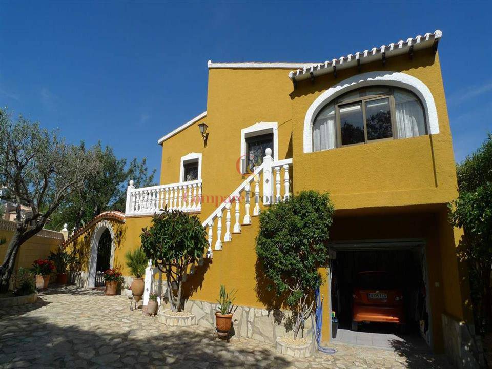 Beeindruckende Villa im traditionellen Stil zum Verkauf in Orba, Alicante, Costa Blanca. Das Anwesen verfügt über einen großen Garten, der leicht zu pflegen ist. Der Hauptteil des Hauses befindet sich im Obergeschoss und ist mit einer kleinen Eingangshalle, einem Wohnzimmer und einem separaten Esszimmer mit Zugang zu einer Terrasse mit herrlichem Blick auf das Tal, die Berge und das Meer ausgestattet. Eine unabhängige Küche, ein geräumiges Schlafzimmer und ein großes Badezimmer.