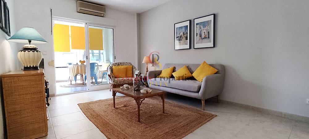 Apartment mit 2 Schlafzimmern, 1 Badezimmer und 1 WC in einer Urbanisation 50 m vom Strand entfernt. Wohnanlage mit Gemeinschaftspool und Gärten. Amerikanische Küche. Verglaste Terrasse. Parkplatz im Preis inbegriffen.