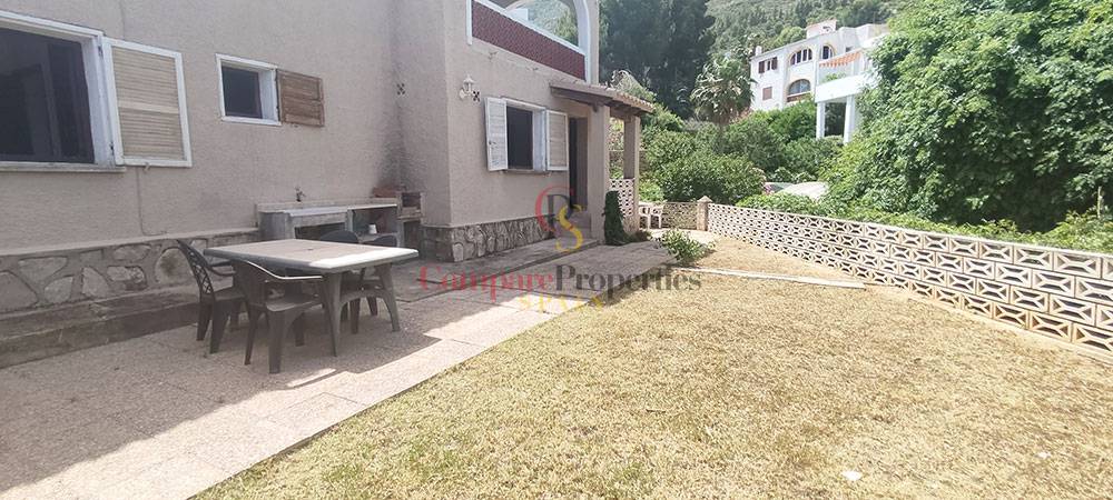 Villa zum Verkauf in der Gegend von Campusos in Dénia. Es ist in zwei Etagen aufgeteilt. Der erste Stock ist renoviert und bereit zu leben. Das Erdgeschoss ist aufgeteilt in ein Studio mit einem kleinen Wohnzimmer mit Küche, 1 Badezimmer und einem Schlafzimmer. Möglichkeit, das Obergeschoss mit dem Untergeschoss zu verbinden (die Treppe ist fertig). Das Obergeschoss besteht aus einem großzügigen Wohnzimmer mit amerikanischer Küche, 3 Schlafzimmern und 2 Bädern.