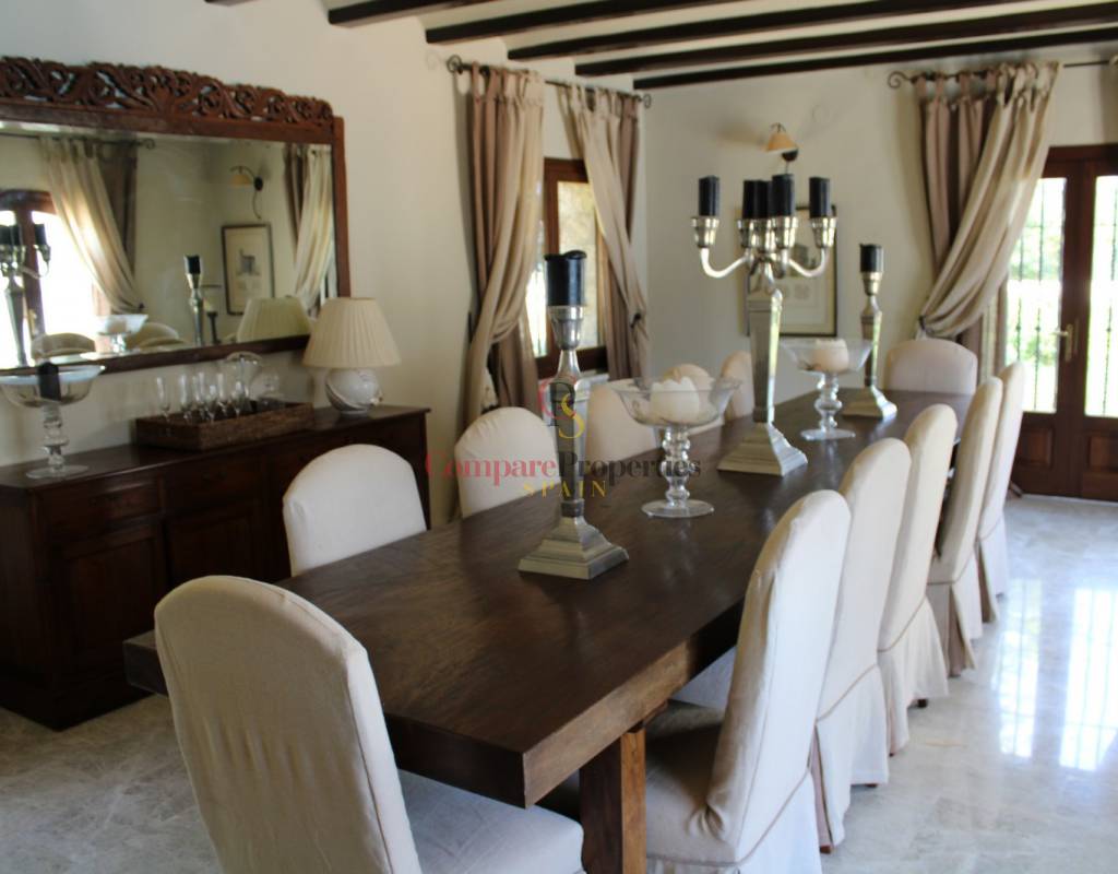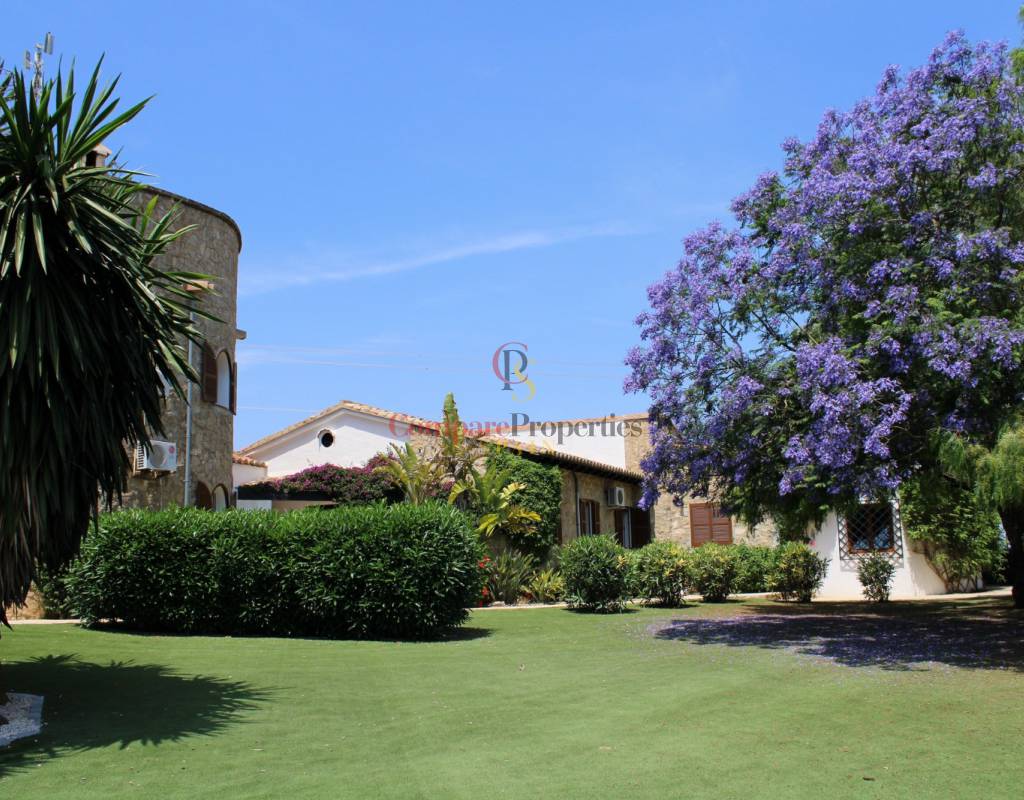 Wunderschöne Finca mit Panoramablick auf das Meer und die Berge zum Verkauf in Pedramala an der Küste von Benissa. Diese hervorragende Finca erstreckt sich über zwei Etagen und liegt auf einem wunderschönen Grundstück, das fast vollständig flach ist. Mit dem Mittelmeer im Vordergrund und der Sierra Bernia im Hintergrund ist dieses Anwesen wirklich ein Traum.Sie betreten das Anwesen von einer ruhigen Straße, durch die Eingangstore und dann die lange Auffahrt hinunter zum Eingang des Grundstücks, wo Parkplätze für mehrere Autos und eine integrierte Doppelgarage mit ferngesteuerten Türen zur Verfügung stehen. Sie betreten die Finca durch doppelte Holztüren in eine Eingangshalle mit Zugang zur Garage, dann durch Glastüren in einen beeindruckenden Flur mit Zimmern auf der linken Seite und Glastüren zum Innenhof und Poolbereich auf der rechten Seite. Die ersten drei Zimmer sind Doppelzimmer, alle mit eigenem Bad und eines mit privater Terrasse im Garten. Dann finden Sie das große Haus mit Dusche. Weiter unten im Flur befindet sich ein privater Bereich des Eigentümers mit Wohnzimmer, verglaster Naya und einer Treppe hinauf zu einem Doppelzimmer mit herrlicher Aussicht, einem eigenen Badezimmer mit Badewanne und Dusche und einer privaten Terrasse mit 360º-Aussicht und einem Abstellschrank. Der Treppenabsatz vor dem Schlafzimmer hat viele Kleiderschränke und unter der Treppe gibt es auch viel Stauraum. Als nächstes kommt ein riesiges Wohnzimmer mit offenem Kamin und integriertem Holzofen, einem erhöhten Essbereich und verglasten Türen, die zur offenen Naya und zum Garten führen. Von hier aus betreten Sie die geräumige Küche, die komplett mit handgefertigten Holzelementen und auffälligen Granit-Arbeitsplatten einschließlich einer großen Insel ausgestattet ist. Vor der Küche befindet sich ein offener Bürobereich mit Blick auf den Garten mit Meerblick und einer Tür, die zum Grillbereich führt segelartige Markisen für Schatten. Von der Küche gibt es einen kleinen Flur, der den Heizungsraum mit einer Treppe hinunter zu einem großen Weinkeller umfasst, und am Ende des Flurs befindet sich ein sehr großes Esszimmer mit Türen, die in den Innenhof führen.Der Innenhof enthält einen herrlichen 13,5 x 10 m großen Pool, eine Pooldusche und eine große offene Naya mit viel Platz zum Entspannen und Essen und mit einem Barbereich an einem Ende. Es gibt eine zweite große offene Naya mit Blick auf den Garten und das Meer, die vom Hauptwohnzimmer und auch von der Küche aus zugänglich ist. Der Garten ist großartig, große Kunstrasenflächen, die durch viele ausgewachsene Pflanzen und Bäume getrennt sind, darunter ein schöner Jacaranda-Baum, ein Obstgarten mit vielen Obstbäumen, viel Platz mit natürlichem Schatten und sogar ein Putting-Bereich, um Ihr Golfspiel zu verbessern. Neben der Doppelgarage befindet sich ein großer Hauswirtschaftsraum/Abstellraum mit einer Tür zum Garten.- Kernpunkte:- Baujahr 1970- Seit 2006 von den jetzigen Eigentümern renoviert und gepflegt- Meerblick von der ganzen Finca und dem Garten- Ausrichtung nach Süden- Marmorböden- Gas-Zentralheizung- Klimaanlage in den Schlafzimmern und im privaten Wohnzimmer, im Hauptwohnzimmer vorinstalliert- Wecker- Solarbeheiztes Wasser mit Elektroheizung und Gasboiler als Backup- Internet- Wecker- Doppelt verglaste Türen und Fenster aus Iroko-Rahmen- Persianas in allen Schlafzimmern, einige Mücken- Gartenbewässerung- Jährliche Steuern 1022,22 €- Möbel verhandelbar- Die Besitzer dieses großartigen Anwesens lieben es immer noch, aber es ist an der Zeit, weiterzuziehen und eine andere glückliche Person alles genießen zu lassen, was es zu bieten hat- Fotos werden dieser Eigenschaft nicht gerecht, Sie müssen sie besuchen, um sie vollständig zu schätzen- Entfernungen:- Nächstes Restaurant 650 m- Nächster Supermarkt 1,9 km- Nächster Strand, Cala la Fustera, 4,2 km- Stadt Benissa und Autobahnanschluss 6,1 km- Internationaler Supermarkt und eine große Auswahl an Restaurants an der Küste 6,1 km- Moraira Strand, Jachthafen und Stadtzentrum 8,7 km