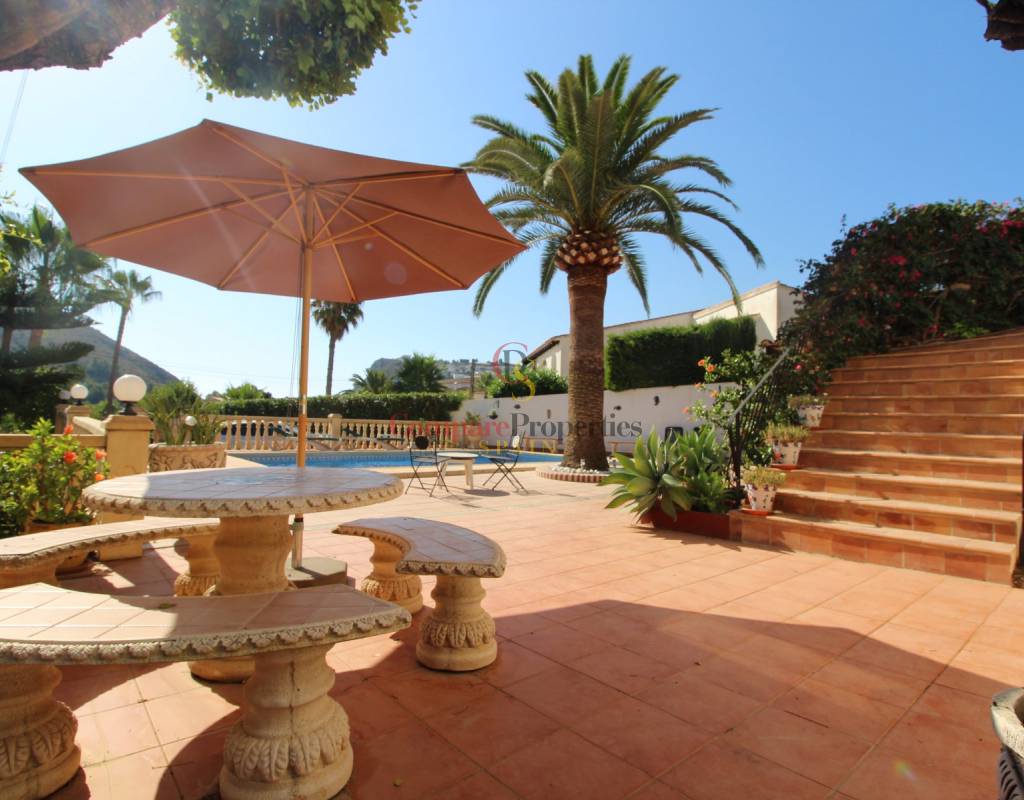 Traditionelle Villa zu verkaufen in Paichi, Moraira. Wenn eine Sache gilt für diese Eigenschaft ist es "gut gepflegt". Ob es die Hauptunterkunft, die Gästewohnung oder der reife Garten ist, alles ist in sehr gutem Zustand. Das Haus liegt in einer ruhigen Sackgasse und profitiert von einer offenen Aussicht (im Obergeschoss) und sogar einem winzigen Stückchen Meerblick. Es sind nur 5 Autominuten bis zum charmanten Städtchen Moraira mit seinen Sandstränden und vielen Geschäften, Restaurants und Bars.