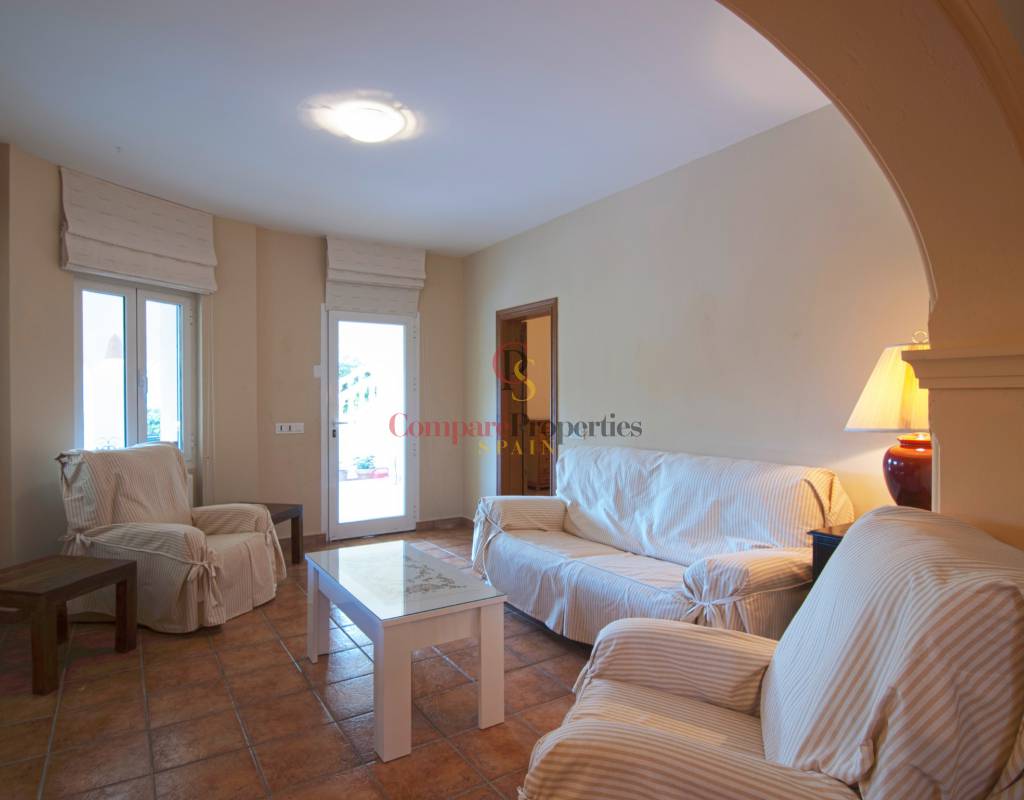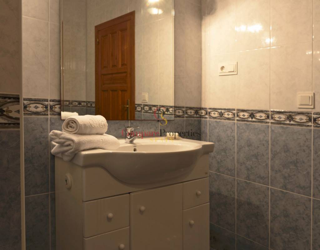 INNEN: Jede Wohnung besteht aus einem Wohn-/Esszimmer mit Sat/TDT-Fernseher und Zugang zur überdachten Terrasse und zum Pool, einer offenen Küche mit Cerankochfeld. Ein Hauswirtschaftsraum mit Waschmaschine. Ein großes Schlafzimmer mit Doppelbett, Deckenventilator, Bad mit italienischer Dusche und Zugang zur überdachten Terrasse. Ein Schlafzimmer mit Doppelbett und Deckenventilator mit Zugang zu einem gemeinsamen Bad mit Badewanne (dieses Bad befindet sich zwischen den 2 Schlafzimmern, mit unabhängigem Eingang von jedem Schlafzimmer). Ein Schlafzimmer mit Doppelbett, Deckenventilator und Zugang zum Gemeinschaftsbad.