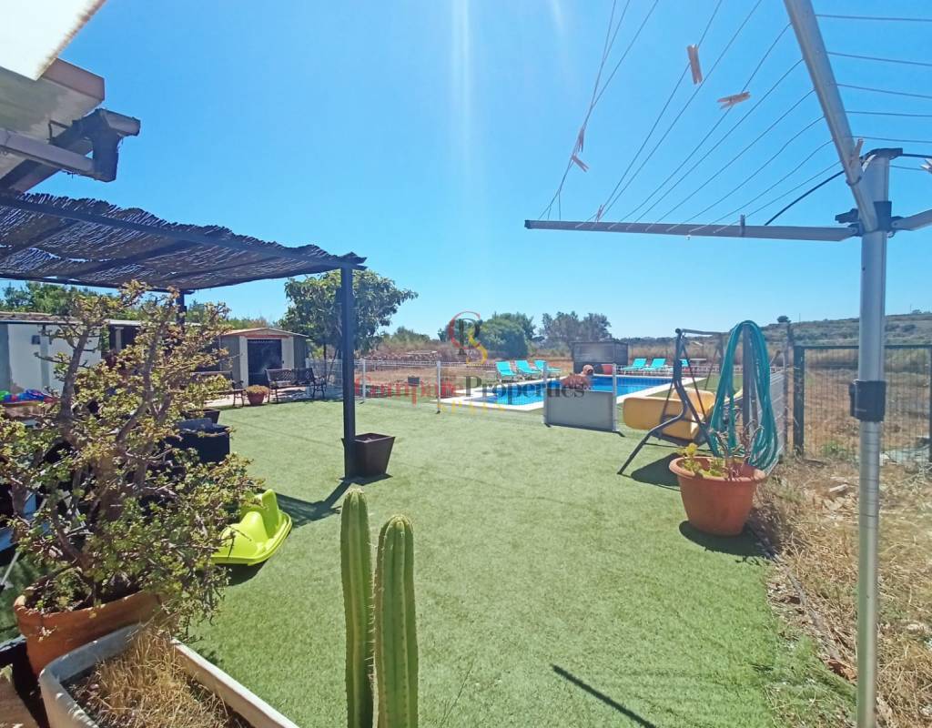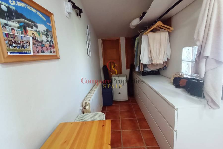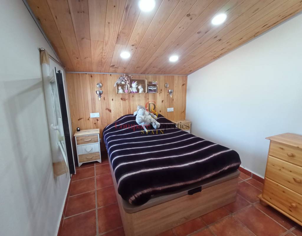 Es ist eine Villa von 230 m2 auf einem Grundstück von 3.500 m2. Die Immobilie besteht aus einem Wohnzimmer mit Klimaanlage, einer offenen Küche, die 2021 komplett renoviert wurde, einem großen Esszimmer. Vom Wohnzimmer aus hat man Zugang zu einem Raum, der jetzt als Abstellraum genutzt wird. Von der Küche aus hat man Zugang zur Speisekammer und einem kompletten Badezimmer mit Badewanne. Vom Esszimmer aus hat man Zugang zum Hauptschlafzimmer mit eigenem Bad mit Dusche, zu einem weiteren Schlafzimmer und der Treppe zu einem weiteren Schlafzimmer, einem Abstellraum und einer Sonnenterrasse. Die Villa hat eine Veranda mit BBQ und Zugang zum Garten mit Terrasse und privatem Pool. Es gibt auch einige Wände, die als Abstellraum genutzt werden und zu einer Wohnung umgebaut werden könnten. Auf dem Grundstück gibt es Parkplätze für 7 Autos und eine geschlossene Garage für 2 Autos. Das Haus hat legalisierte Sonnenkollektoren und eine Zisterne von 20.000 Litern. Nur wenige Minuten von allen Dienstleistungen von Benissa, Calpe und Moraira entfernt.