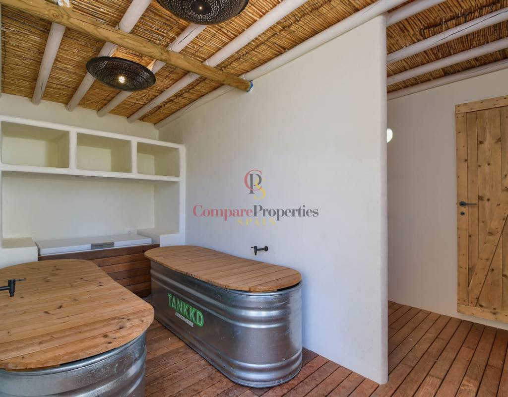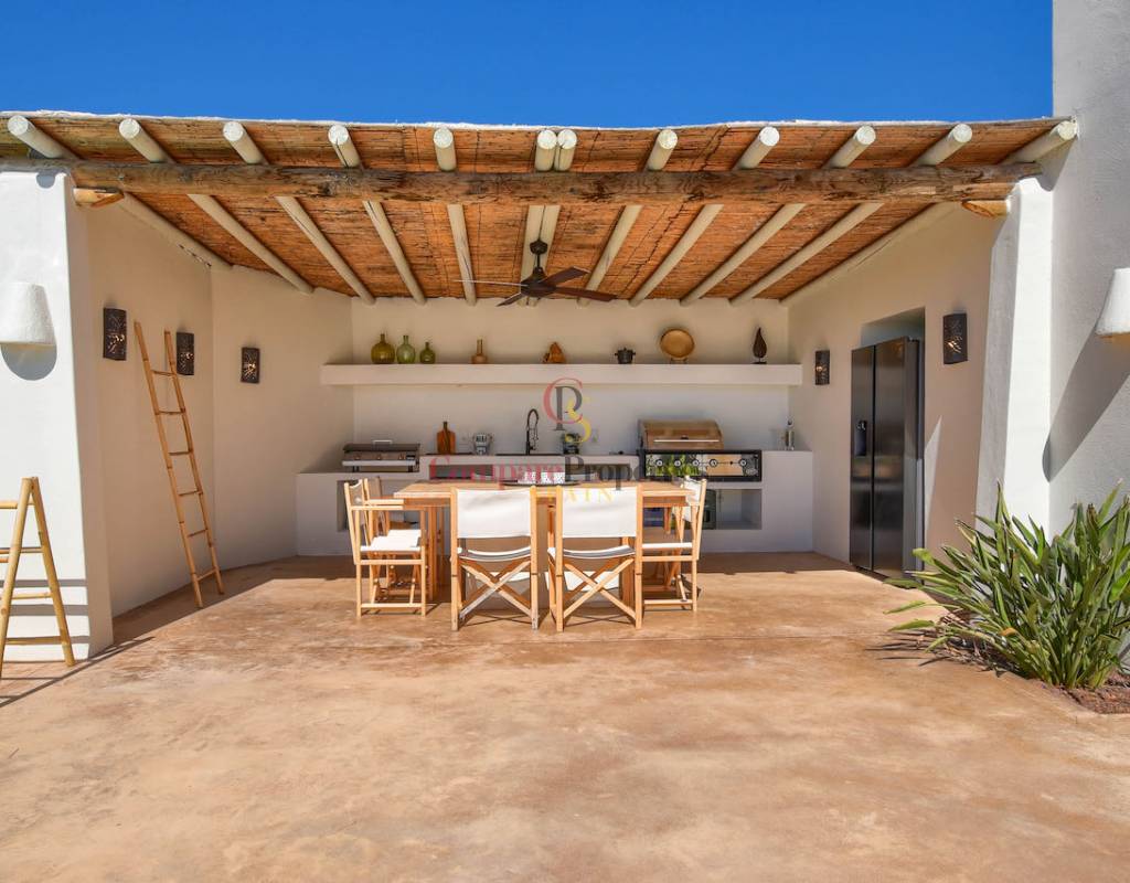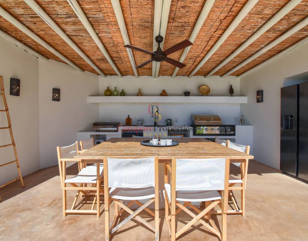 Spektakuläre Villa im Ibiza-StilVier Schlafzimmer und drei BäderVoll ausgestattete moderne offene Küche1 StockwerkGroßer privater Pool und TerrassenSommerküche und BBQ-BereichSaunabereich mit Duschen und EisbädernHauswirtschaftsraum und AbstellraumAutoabstellplatz Freier Blick und fußläufige Entfernung zum Meer