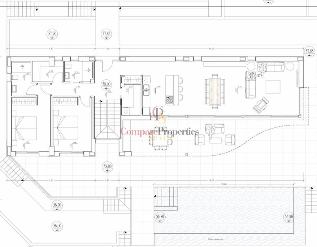 Luxuriöses Projekt mit vier Schlafzimmern und vier BädernAusgestattete Küche mit SpeisekammerAbstellraum und WaschkücheAnkleidezimmerEingebaute SchränkeGroßer Pool 52m2 und TerrassenEssen im Freien & BBQGarage für zwei AutosAlarmanlage, vorinstalliertFreier Blick auf die Berge und das MeerNahe zum Zentrum und zum Strand