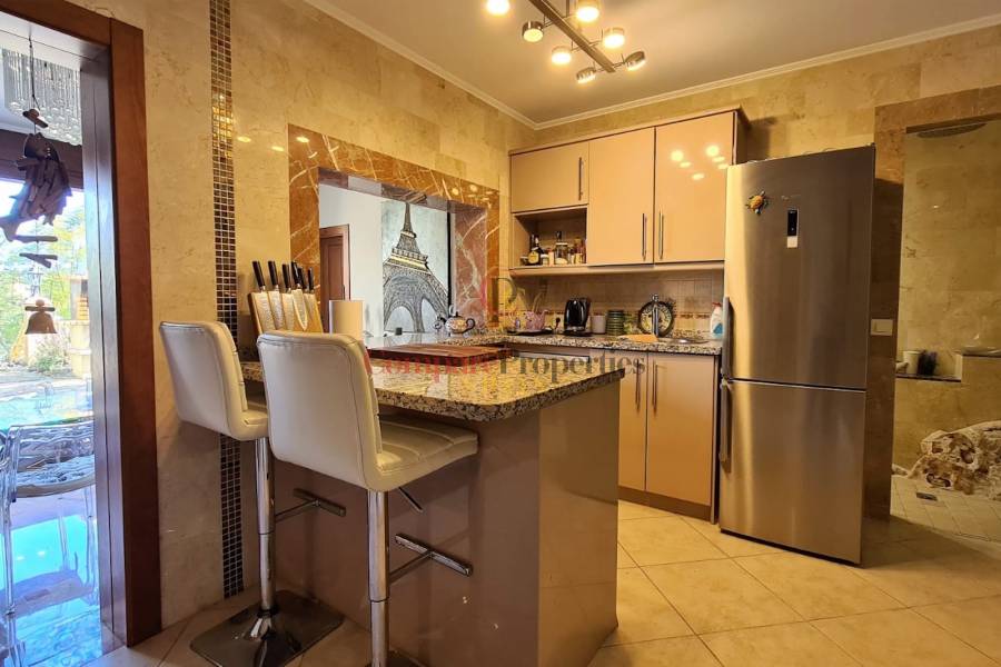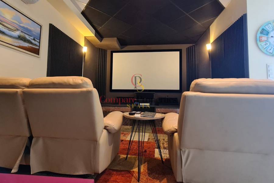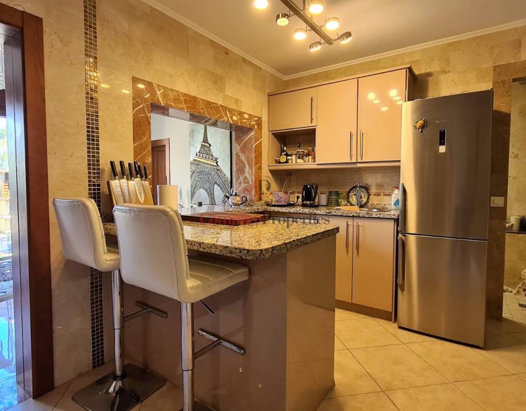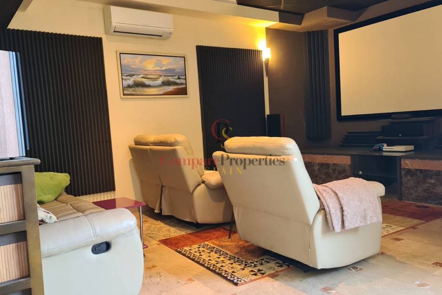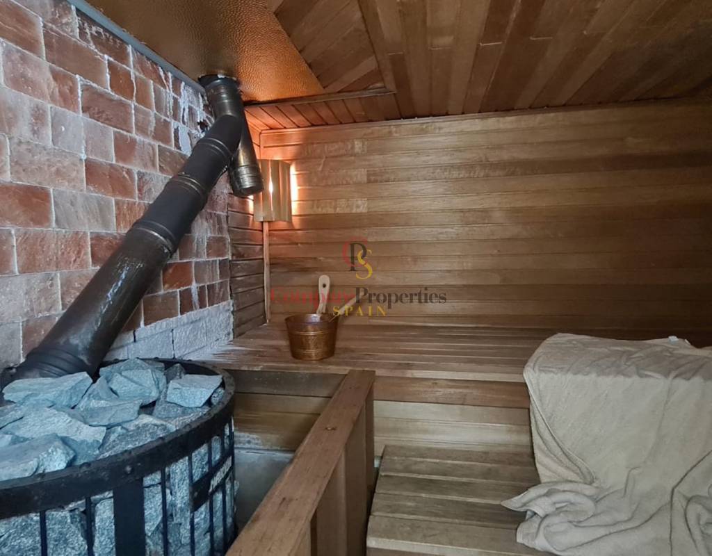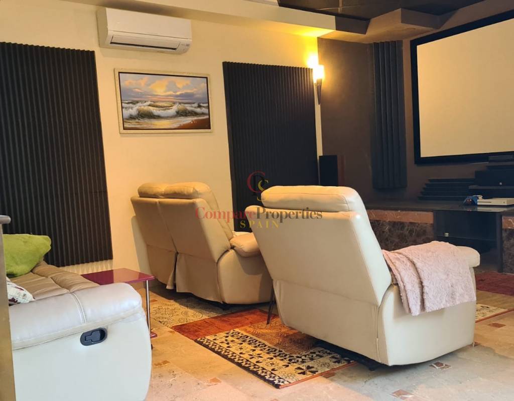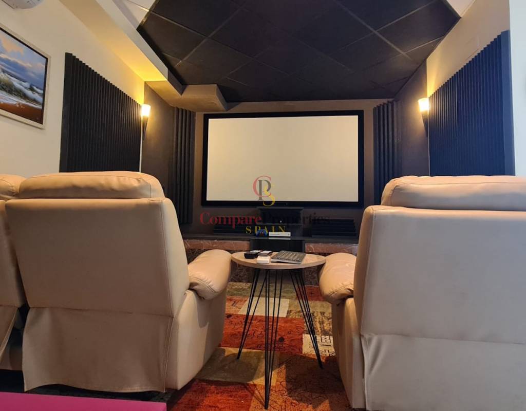 Diese Villa hat auch eine separate Einlieger-Wohnung von 86m² mit einem separaten Eingang auf der unteren Ebene, die ein Schlafzimmer mit einem Büro, Mini-Küche, Heimkino, Sauna, separates WC, zwei Duschen hat.