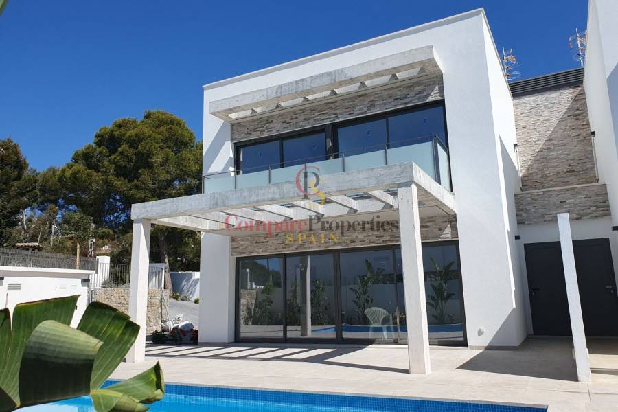 Dieses prächtige, im Bau befindliche Projekt im modernen Stil erstreckt sich über 2 Etagen auf einem Grundstück von 458 m2 und verfügt über 130 m2 überdachte Baufläche. Dieses Anwesen profitiert von seiner Lage, 1,5 km vom Zentrum von Moraira-Teulada entfernt, mit Blick auf das Tal. Diese Villa verfügt über 3 Schlafzimmer, 3 Badezimmer (en-suite), 1 Waschküche. Zu anderen Qualitäten gehören; Zentralheizung durch Fußbodenheizung, Installation von Klimaanlagen, Aluminium-Außenschreinereiarbeiten mit anthrazitgrauer Oberfläche, mit Moskitonetzen und elektrischen Jalousien in den Schlafzimmern, doppeltes Sicherheitsglas mit thermischer Trennung, offene Terrasse mit privatem Pool im Erdgeschoss.