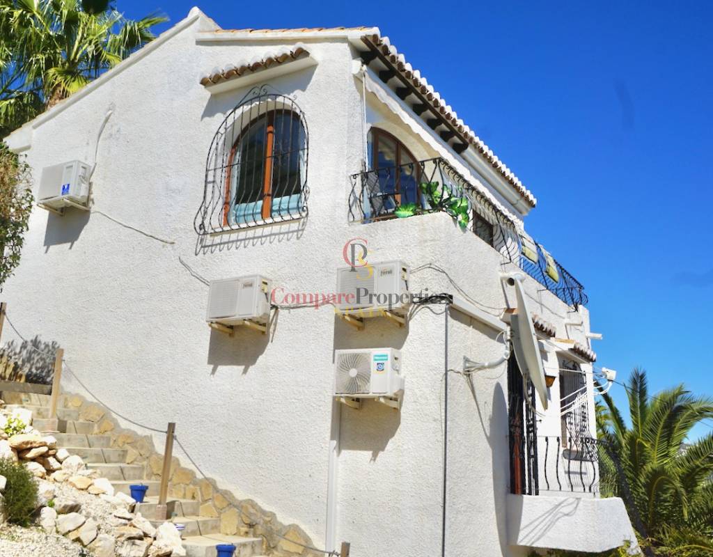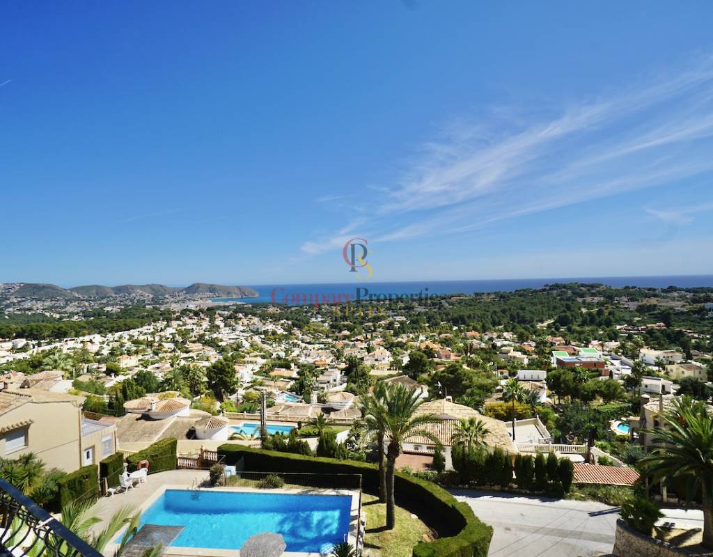 Dieses kürzlich renovierte, Ende der Terrasse Villa hat die erstaunlichsten PANORAMABLICK auf das Meer von Moraira den ganzen Weg zum Peñon de Ifach in Calpe!