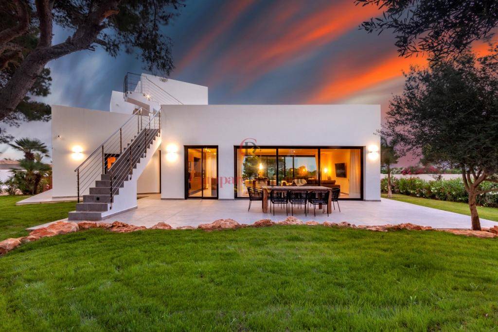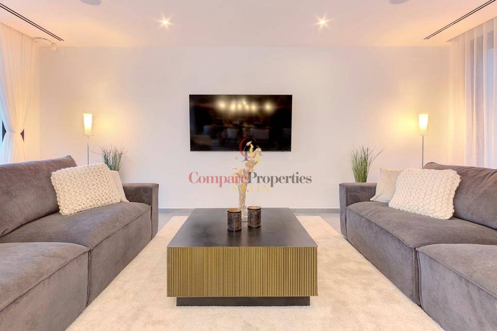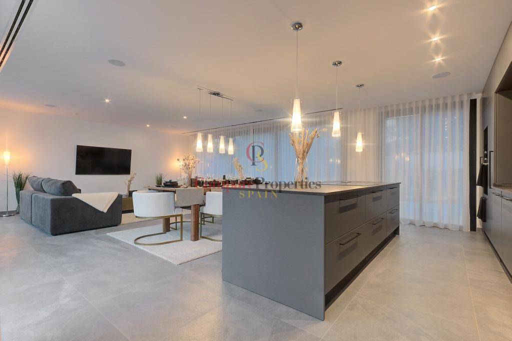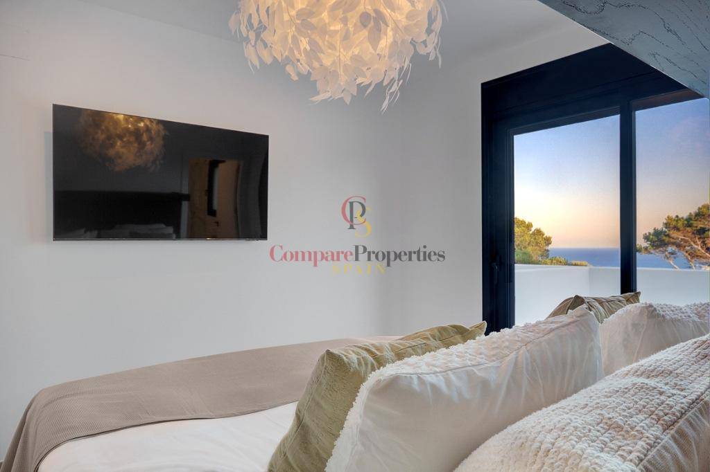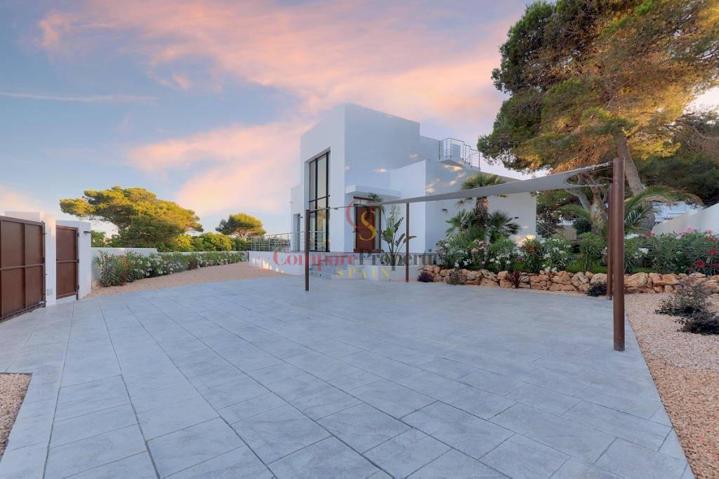 Das Haus ist über eine spektakuläre und moderne Eingangshalle mit Meerblick zugänglich, verfügt über ein geräumiges und helles Wohnzimmer mit voll ausgestatteter offener Küche. Die Villa verfügt über 4 Schlafzimmer, zwei Badezimmer und ein Gäste-WC. 3 der Schlafzimmer befinden sich im Erdgeschoss und das Hauptschlafzimmer mit Bad in Suite und Ankleideraum befindet sich im zweiten Stock. Vom Hauptschlafzimmer aus haben Sie Zugang zu zwei wunderschönen Terrassen mit herrlichem Ausblick.