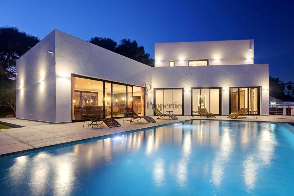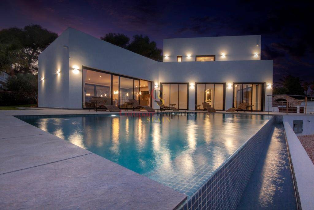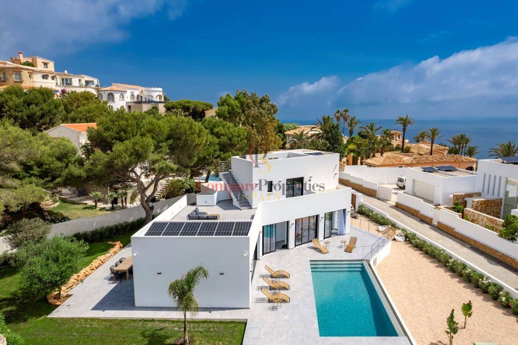 Wunderschöne neu fertiggestellte Villa, brandneu von hoher Qualität in Jávea, nach Süden ausgerichtet und spektakuläre Aussicht auf das Meer und den Leuchtturm von Cabo la Nao. Nur wenige Autominuten von den Stränden von Ambolo, Granadella und Portixol entfernt, bietet diese Villa Meerblick auf allen Ebenen.