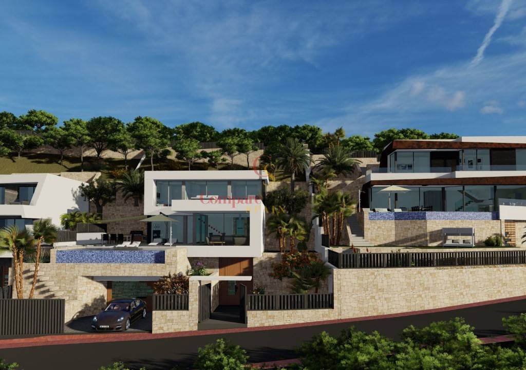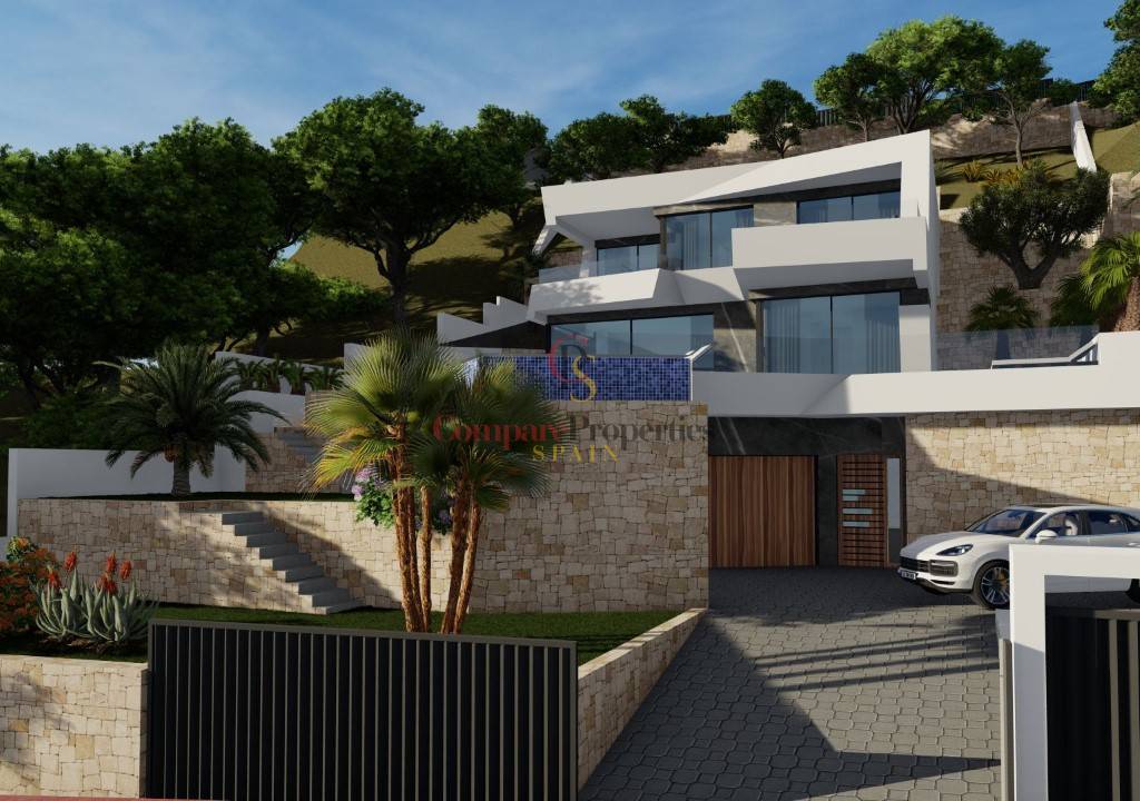 Dies ist ein neues Projekt der Grupo Tenza der modernen Villa in Calpe mit herrlichem Blick auf das Meer und den Felsen.