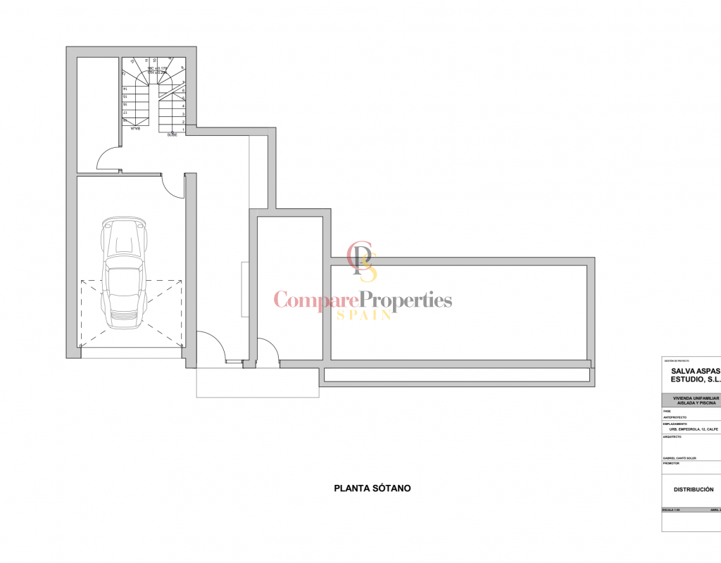 Die Idee des Projekts umfasst einen 10x4-Pool, 3 Schlafzimmer sowie große Ess- und Wohnräume und eine Küche. Eine Garage und Terrassen sind ebenfalls für 80 m2 geplant.