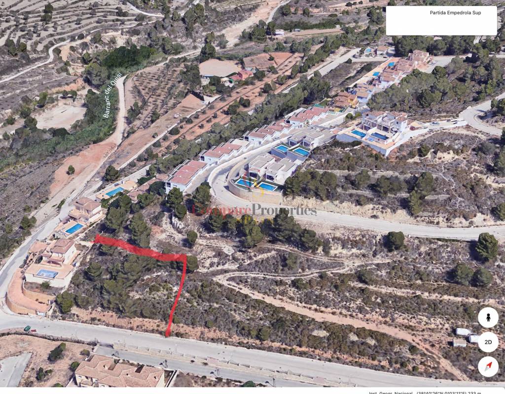 Zu verkaufen großes Grundstück von 1.000 m2 mit schönem und modernem Projekt eines Traumhauses in der Urbanisation Empedrola SUP II von Calpe.