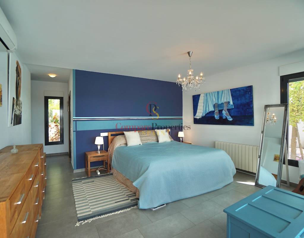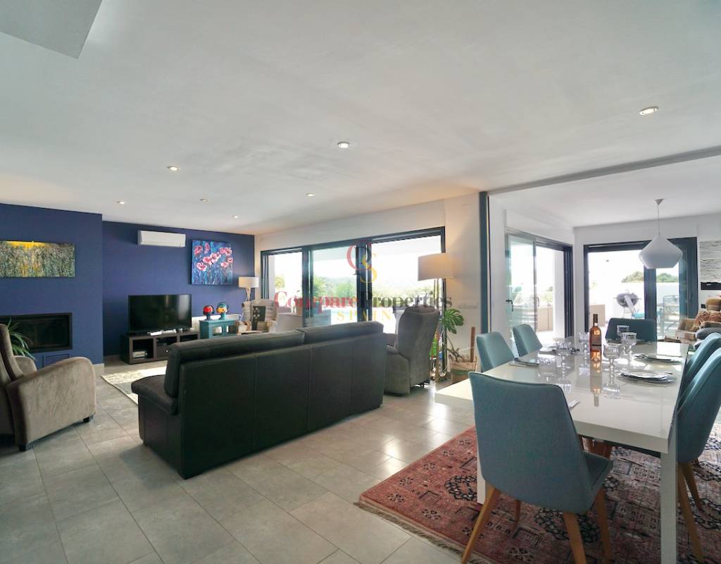 In der begehrten Wohngegend Camarrocha in Moraira gelegen, ist dies eine besondere Gelegenheit, eine moderne Villa im ibizenkischen Stil, die bezugsfertig ist. Camarrocha ist eine erhöhte und ruhige Lage mit Weinfeldern in der Nähe und weitreichenden Panoramablick über Moraira auf das Mittelmeer und die umliegenden Berge und die Landschaft. Annehmlichkeiten und Geschäfte sind nur zehn Minuten zu Fuß entfernt und die Küste ist nur 3 km von der Villa entfernt, wo Sie die Sandstrände, schöne Buchten und eine große Auswahl an Restaurants, Geschäften und Cafés im Zentrum von Moraira erkunden können.