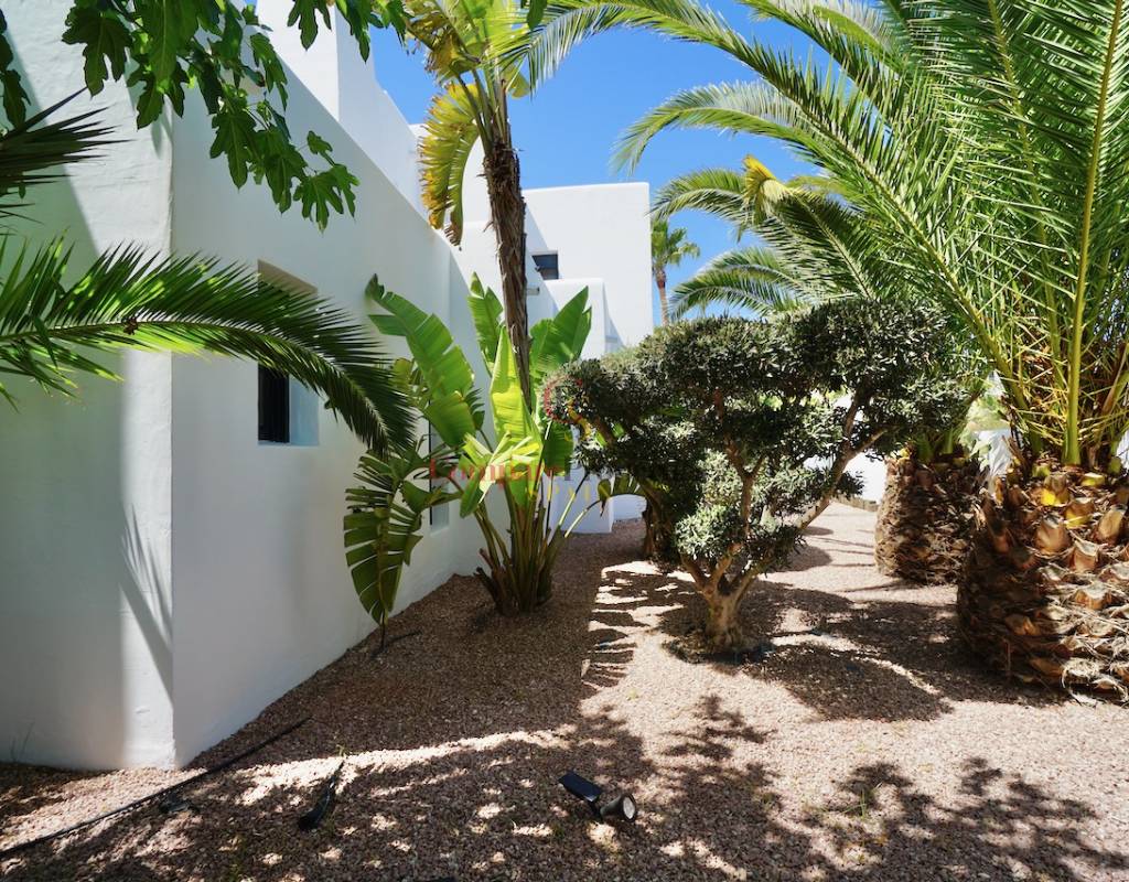 Durch das elektrische Tor gelangen wir auf die gepflasterte Auffahrt und den Carport und sehen die spektakuläre weiße Villa im ibizenkischen Stil. Die Villa mit drei Schlafzimmern und drei Bädern liegt auf einem großen, umzäunten Grundstück und ist von einem perfekt gepflegten Garten mit einer Auswahl an Obstbäumen wie Feigen, Pfirsichen, Orangen und Äpfeln umgeben. Alles wird über ein Bewässerungssystem bewässert und die Gartenbeete sind mit Kies ausgelegt, was die Außenanlagen pflegeleicht und attraktiv macht.