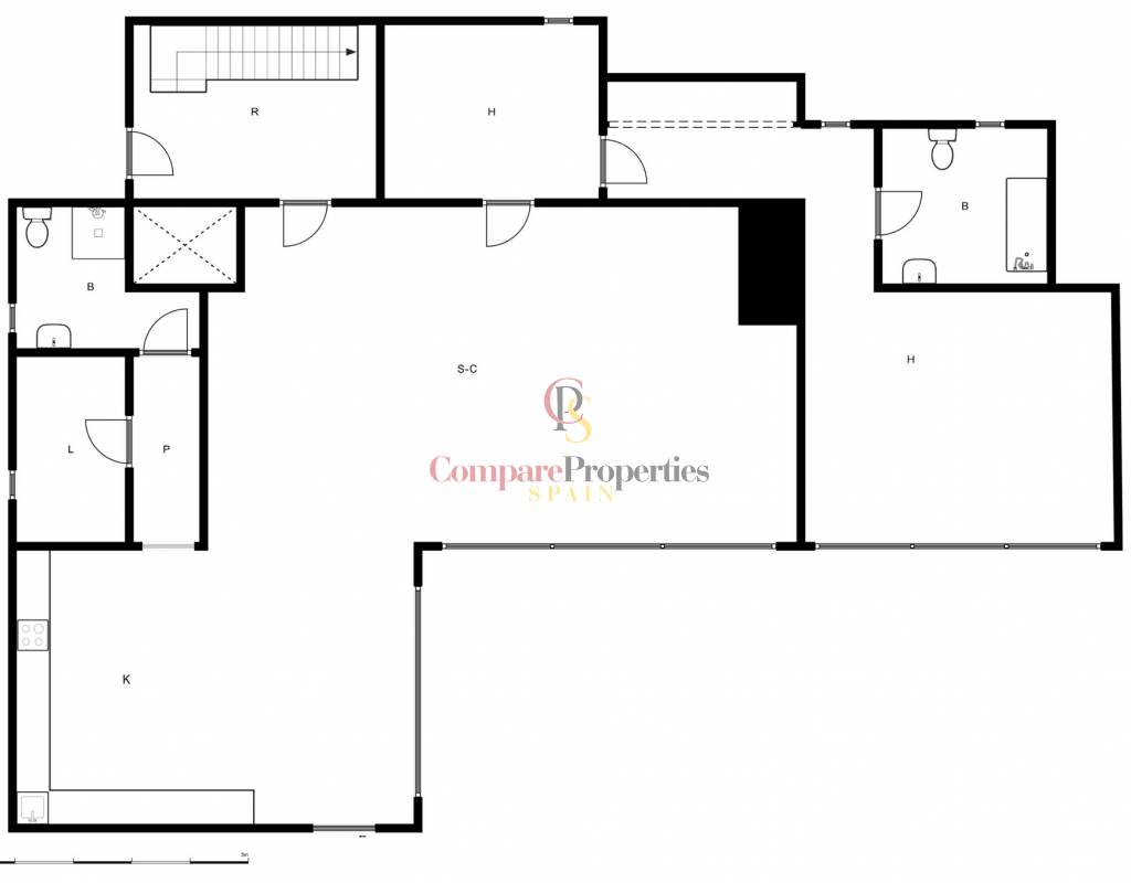 - Kitchen: Open plan