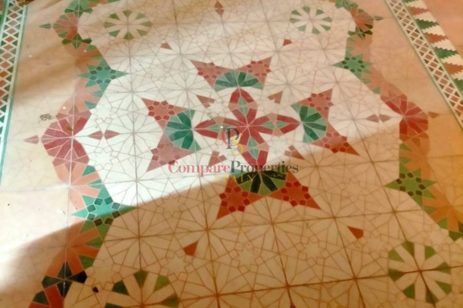 Das Haus muss renoviert werden, hat aber Elemente, die es zu etwas Besonderem machen, wie hohe Decken, Holzbalken und einen schönen alten Hydraulikboden