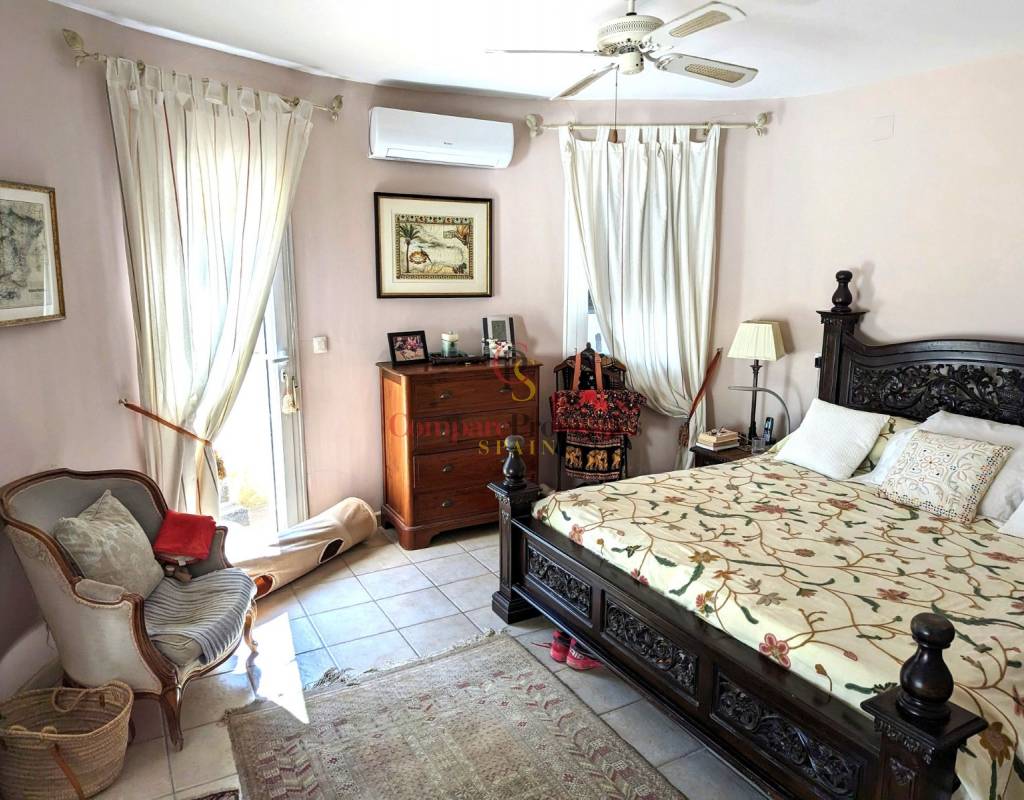Diese geräumige Villa mit herrlichem Blick auf das Meer und die Berge befindet sich in der ruhigen und grünen Gegend La Vina an der Küste von Benissa. Es hat zwei Eingänge, einen von einer unteren Straße, die Sie zu einer Garage, einem Carport, Parkplatz für mehrere Autos und dem Gästeschlafzimmer führt, und den zweiten von einer höher gelegenen Straße, die Sie zu einer offenen Auffahrt und dann direkt zur Haustür in der Hauptwohnebene führt.Die Hauptebene der Villa ist die gleiche Ebene wie die Poolterrasse, mit einer oberen Ebene Master-Suite und einem unteren Ebene Gästeschlafzimmer. Rechts befindet sich ein Schlafzimmer mit Deckenventilator, das derzeit als Musikzimmer genutzt wird. Links befindet sich das Familienbadezimmer mit Eckbadewanne, Eckdusche, Waschtisch und beheiztem Handtuchhalter. Gegenüber dem Badezimmer befindet sich das Schlafzimmer 2, das mit Einbauschränken, Deckenventilator und Klimaanlage ausgestattet ist. Durch einen Torbogen betreten Sie das große Wohnzimmer mit viel Platz zum Entspannen und einem Kamin mit Holzofen, der direkt auf die Poolterrasse führt. Auf der linken Seite befindet sich ein runder Essbereich, der direkt neben einem Torbogen liegt, der Sie in die Küche führt. Die Küche ist sehr gut gestaltet, mit weißen Schränken, Blue Pearl Granitarbeitsplatten und Edelstahlgeräten, darunter ein 90 cm großer Backofen, eine Mikrowelle, ein 5-Flammen-Gasherd, ein Dunstabzug, ein Geschirrspüler und ein amerikanischer Kühl-/Gefrierschrank. Über die Treppe im Flur erreichen Sie das Hauptschlafzimmer mit Ankleidebereich, begehbarem Kleiderschrank und eigenem Bad mit Dusche, Waschtisch mit zwei Waschbecken und einem beheizten Handtuchhalter. Vom Schlafzimmer aus gibt es eine Glastür, die auf die obere Ebene des Gartens führt, und durch eine Glasschiebetür im Ankleidebereich gelangen Sie auf eine private Terrasse mit herrlichem Meerblick. Von dieser Terrasse aus hat man Zugang zu einem großen Abstellraum auf dem Dachboden.Außen gibt es eine geräumige Poolterrasse mit wunderschönem Blick über das Tal bis hin zum Meer, einen 8,5 x 5 m großen Pool, eine Pool-Dusche, einen Grillplatz, eine Treppe zu den oberen Gartenebenen und eine Treppe hinunter zur unteren Auffahrt. In der Auffahrt befinden sich ein großer Carport, eine Garage mit Zwischengeschoss, eine große Werkstatt, in der auch die Pumpenanlage für den Pool untergebracht ist, ein Heizungsschrank und das Gästezimmer. Das Schlafzimmer verfügt über einen Schreibtisch und ein eigenes Duschbad. Der Garten hat reife Pflanzen und Bäume mit vielen Möglichkeiten in der 1220m2 plot.- Key points:- Built: 1982- Gegenwärtige Eigentümer seit 2002- Reformarbeiten seit 2006- Gaszentralheizung- Klimaanlage in zwei Schlafzimmern auf der Hauptebene- Doppelverglasung im Jahr 2018- Persianas und Moskitonetze- Markise vor dem Wohnzimmer angebracht- Glasfaserinternet und Satellitenfernsehen verfügbar- Jährliche Steuern 989€- Immobilie wird teilweise möbliert angeboten- Entfernungen:- Baladrar Strand 2.4km- Internationaler Supermarkt und eine große Auswahl an Restaurants 3,3km- Golfplatz 3,6km- Strand von Moraira, Yachthafen und Stadtzentrum 5,9km- Autobahnanschluss in Benissa 8,6km- Nächstgelegene Restaurants 1,6 km- Zögern Sie nicht mit Ihrem Besuch !