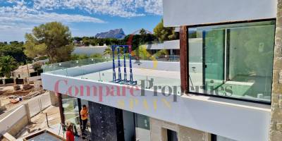 Das Haus hat ein exquisites Design und eine hochwertige Innenausstattung. Es verfügt über eine Doppelgarage und einen überdachten Stellplatz, 4 Schlafzimmer, fünf Bäder (eines davon außen) und ein Gäste-WC, einen Chill-out-Bereich im Obergeschoss mit unschlagbarem Meerblick, einen großen Bereich im Untergeschoss, den der Kunde nach Belieben ausbauen kann (ein Teil des Ausbaus ist nicht inbegriffen), eine Sommerküche. Die überbaute Fläche beträgt 680 m2 plus 222 m2 Terrassen.