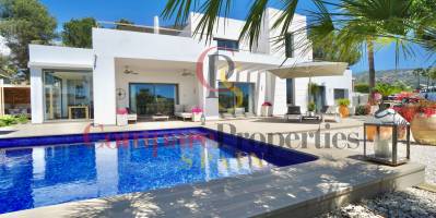 Neubau-Villa zum Verkauf in der begehrten Gegend von Solpark Moraira! Genießen Sie den modernsten Komfort und fühlen sich frei, ruhig zum Dorf in weniger als einer halben Stunde zu schlendern! Auch eine Apotheke, Bäckerei, Tennis / Padelplätze und ein Restaurant sind in der Nähe auf einem 5 Minuten zu Fuß.
