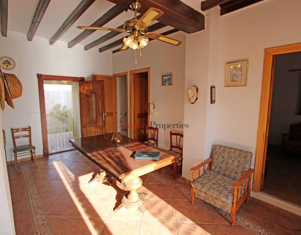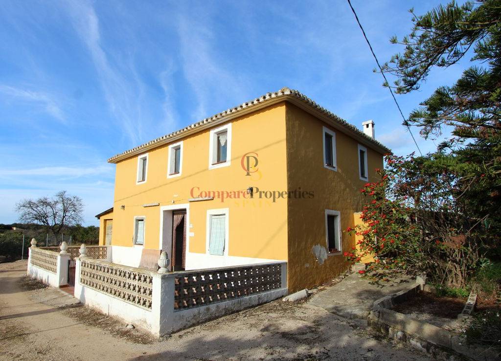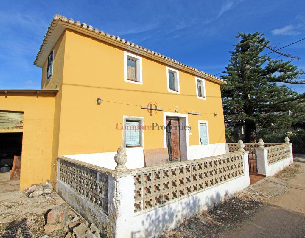 Zu verkaufen dieses Landhaus/Villa mit viel Potenzial in einer ruhigen Gegend, umgeben von Natur und mit einem grossen, komplett eingezäunten Grundstück mit Orangenbäumen in voller Produktion. Hauptgrundstück von 5.555 m2, auf dem das Haus auf 2 Etagen mit 220 m2 bebauter Fläche steht, dann gibt es noch zwei weitere Grundstücke mit 1.994 m2 und 904 m2. Erdgeschoss: Eingangshalle, Wohn-zimmer mit Kamin, 2 Schlafzimmern, 1 Badezimmer mit Dusche und ein Innenhof, in dem sich die Küche/Paella-Grill befindet. Eine Innentreppe führt ins Dachgeschoss, wo sich ein weiteres Wohnzimmer und zwei weitere Schlafzimmern befinden. Es verfügt über eine Garage für 1 Fahrzeug, Lagerräume, Zwinger, Hühnerställe usw., die in Wohnräume umgewandelt werden können. Das Anwesen muss renoviert werden, es könnten jedoch problemlos weitere Schlafzimmern und Badezimmern hinzugefügt werden. Es gibt zwei Arten von Wasser: Wasseraktien zur Bewässerung der 8.453 m2 Orangenbäume mit minimalen jährlichen Kosten und einen Quellwasserbrunnen für den Hausgebrauch mit 0 € Kosten. Ruhige Gegend, knapp nur 3 km von Ondara oder 5 km von den Stränden von Dénia entfernt