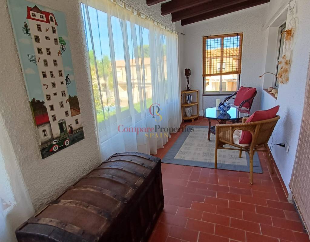 In Denia, Villa zum Verkauf auf 2 Etagen, in einer schönen, ruhigen und sehr gefragten Gegend von Las Rotas. Die Villa befindet sich auf einem flachen Grundstück von 828 m2. Das Haus hat 2 Etagen, das Haupthaus hat 113 m2, verteilt auf 3 große Schlafzimmer mit Einbauschränken, 2 Bäder, sehr gemütliche große Küche mit einer Insel in der Mitte und komplett ausgestattet, 2 Bäder, geräumiges Wohnzimmer mit Kamin und hat Zugang zu einer schönen verglasten Terrasse mit gemütlicher und entspannender Atmosphäre oder auch als Arbeitsbereich, Abgesehen davon hat es eine Terrasse mit Markise nach Süden. Im Erdgeschoss befinden sich 2 unabhängige Apartments mit 1 Schlafzimmer, Bad, Küche, Eisenherd und Terrasse am Eingang mit Veranda, in beiden Wohnungen. Großes Schwimmbad und um diesen herum ein Raum mit Grill, ideal für Partys und Tagungen, Parkplatz für mehrere Autos, das Grundstück ist komplett eingezäunt. Die Entfernung zur Stadt Denia beträgt ca. 2 km.