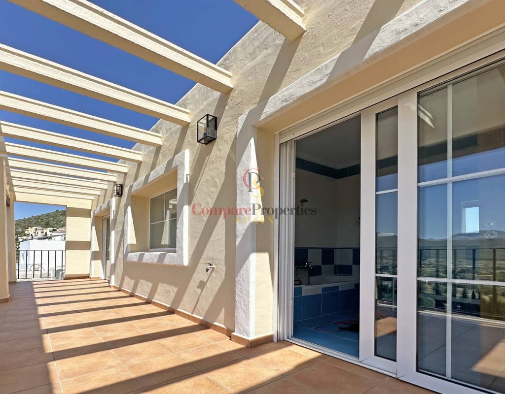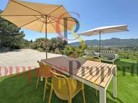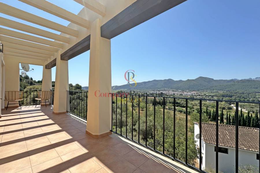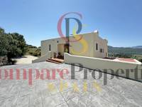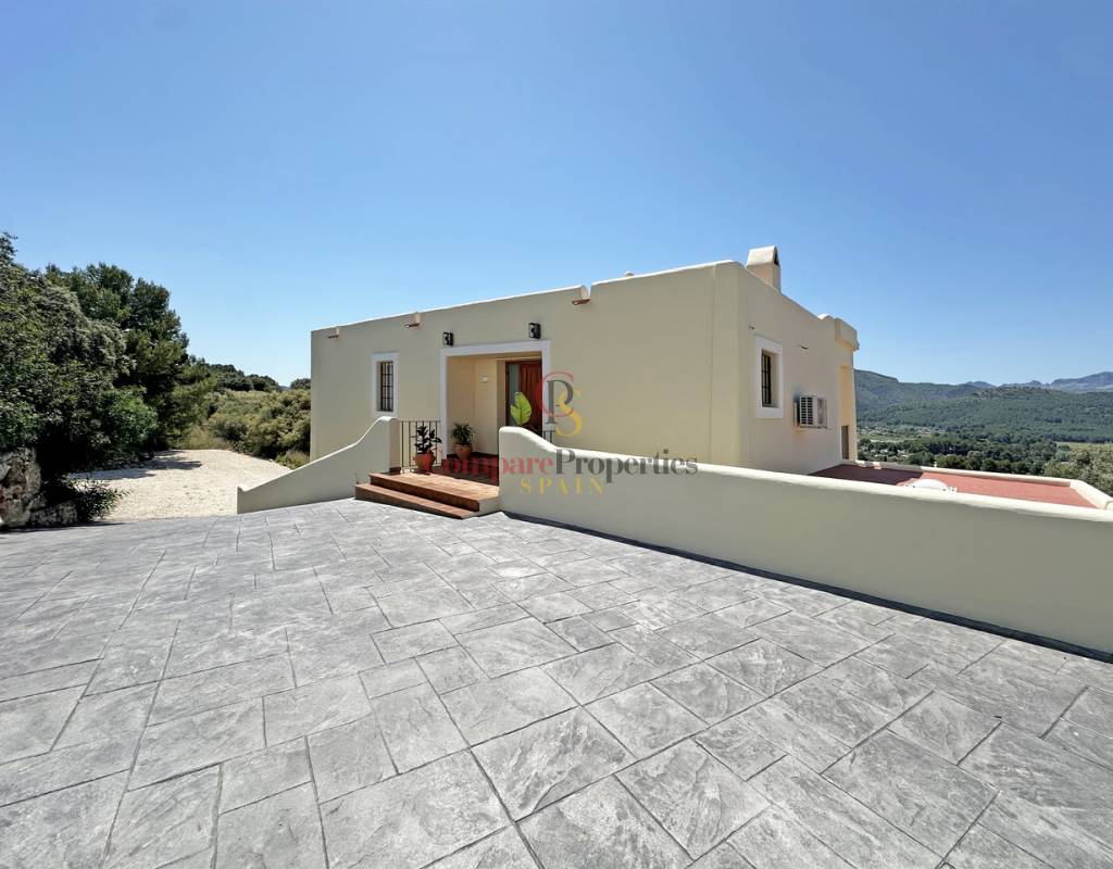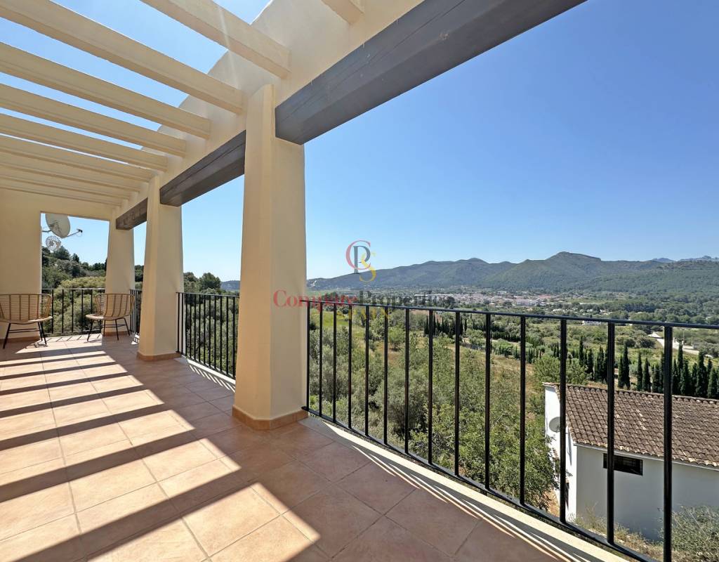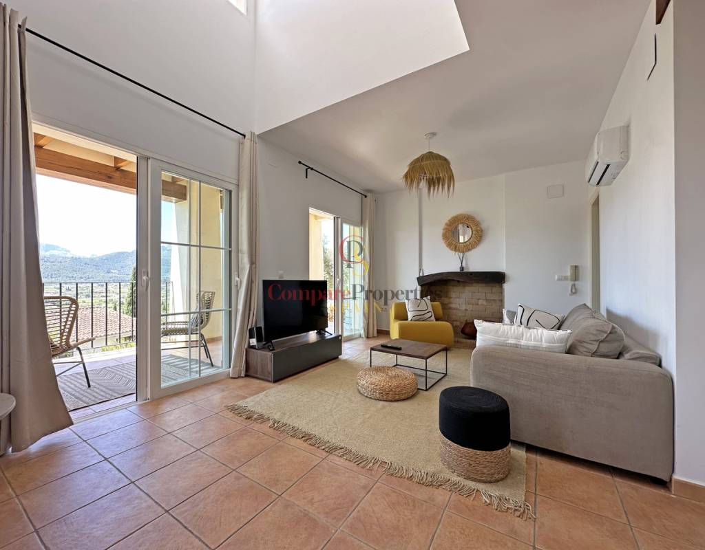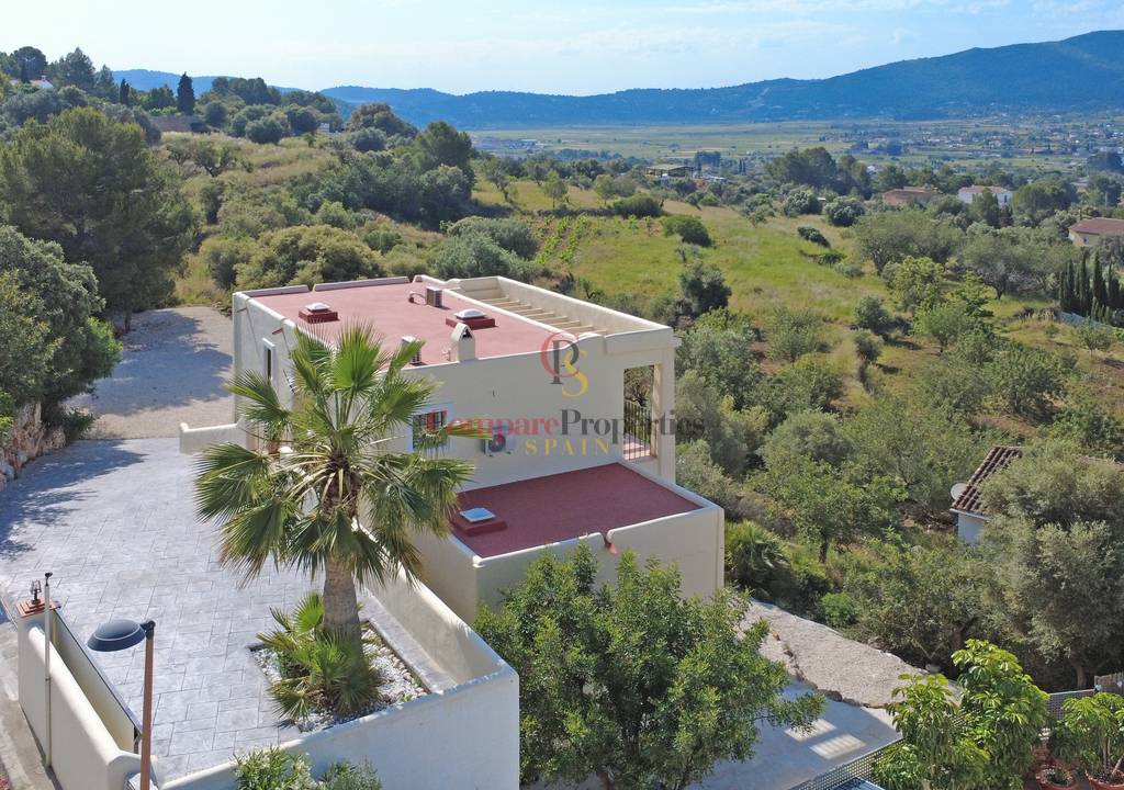 Stilvolle 3-Schlafzimmer-Villa mit Panoramablick auf Tal und Berge.