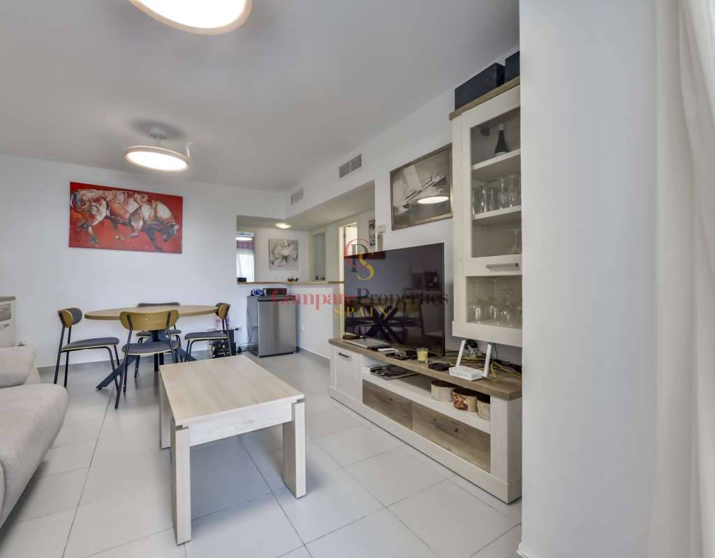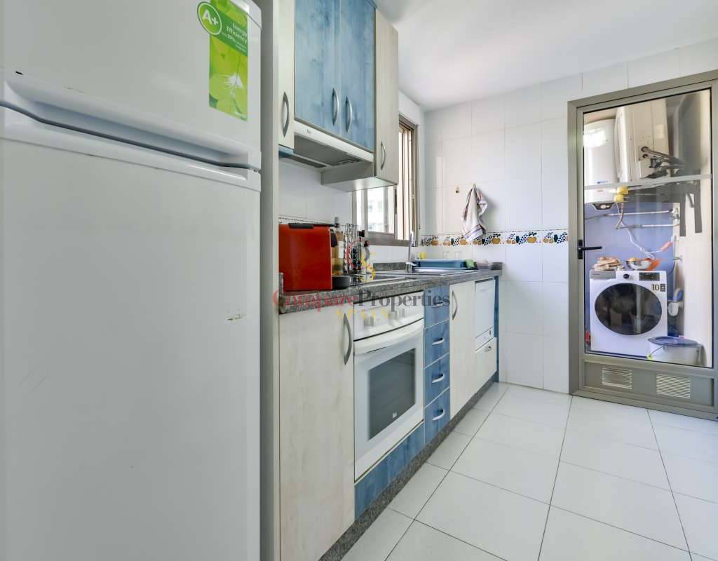 Entdecken Sie den Strand von La Fossa nur wenige Schritte von Ihrer Tür entfernt. Dieses 101 m² große Apartment bietet eine ruhige und entspannende Atmosphäre. Jedes Detail ist auf Ihren maximalen Komfort ausgelegt. Das Apartment wurde renoviert und verfügt über neue Möbel und Geräte. Ein Parkplatz kann separat für 23.000 € angemietet werden. Es bietet zwei Schlafzimmer und zwei Badezimmer und somit den idealen Raum zum Entspannen. Der geräumige Wohn- und Essbereich eignet sich perfekt für Familienfeiern, selbstgekochte Mahlzeiten oder einfach zum Relaxen. Von der Terrasse genießen Sie den Blick auf das Meer und den Peñón de Ifach – ideal, um die Aussicht zu jeder Tageszeit zu genießen. Das Gebäude verfügt über zwei Swimmingpools und eine Sauna. Parkplätze befinden sich direkt vor dem Gebäude. Stellen Sie sich vor, wie Sie die frische Luft einatmen, die Sonne genießen und dem Rauschen der Wellen lauschen, während Sie diese Aussicht bewundern. Dies ist eine einmalige Gelegenheit, in paradiesischer Umgebung an der Costa Blanca zu leben. Zögern Sie nicht: Kontaktieren Sie uns und sichern Sie sich Ihr Stück Paradies.