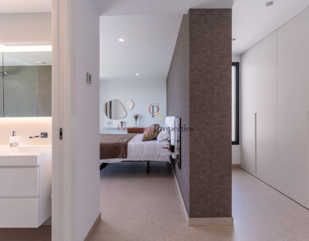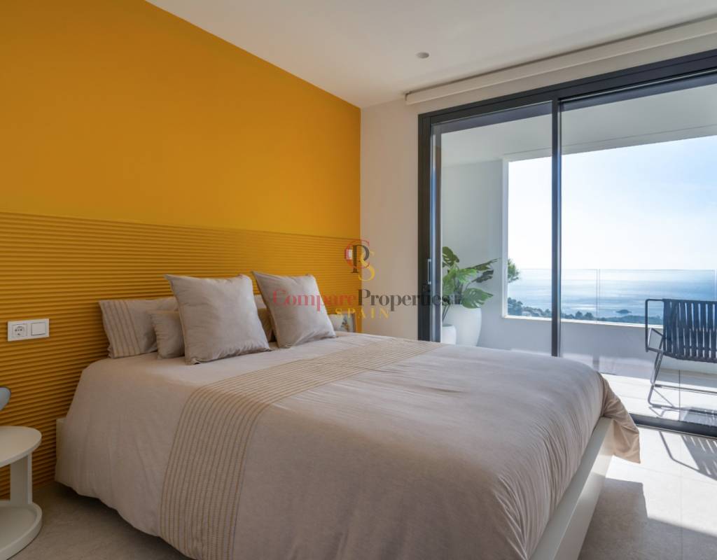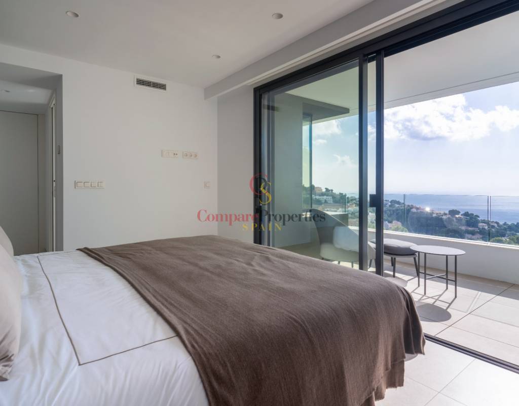 Die Außenbereiche sind auf Entspannung ausgerichtet und bieten mehrere Terrassen und einen prächtigen Swimmingpool, der sich harmonisch in die atemberaubende Panorama-Landschaft einfügt. Die Schlafzimmer sind durchdacht gestaltet, um maximalen Komfort zu gewährleisten, einschließlich eingebauter Kleiderschränke mit Innenbeleuchtung und direktem Zugang nach außen, um die offenen Ausblicke zu genießen.