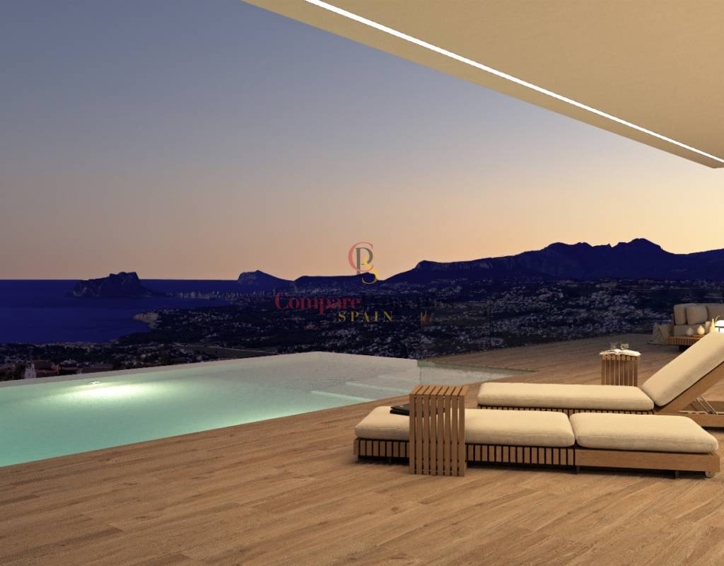 VILLA DELFÍN ist eine NEUBAU-LUXUS-RESIDENZ, die sich auf dem PRESTIGETRÄCHTIGEN GRUNDSTÜCK 137 in der RESIDENCIAL JAZMINES in der Urbanisation CUMBRE DEL SOL befindet. Ihr MODERNES DESIGN präsentiert KLARE LINIEN und ÜBERHANGENDE VOLUMEN, was ihre SPEKTAKULÄRE ERHÖHUNG mit Meerblick und UNVERDELTEN AUSSICHTEN vom PEÑÓN DE IFACH bis zum Horizont hervorhebt.