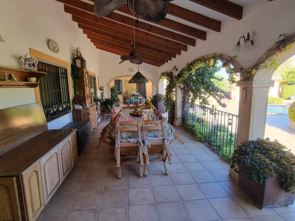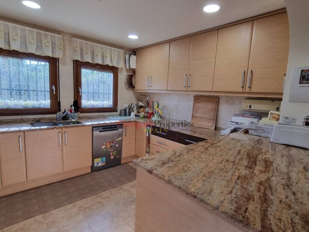 Standort: Diese beeindruckende Immobilie befindet sich in einer ruhigen, ländlichen Gegend mit guten Verbindungen zur Stadt Pedreguer, die sich durch eine hervorragende Infrastruktur sowie die Nähe zu Schulen, Geschäften und medizinischer Versorgung auszeichnet. Die idyllische Umgebung bietet zudem zahlreiche Freizeitmöglichkeiten und eine hohe Lebensqualität. Objektbeschreibung: Dieses geräumige Haus beeindruckt durch seine typische Architektur und vielseitige Nutzbarkeit. Mit einer Wohnfläche von ca. 350 m², verteilt auf 2 Etagen, bietet es genügend Platz für eine große Familie oder ein repräsentatives Zuhause. Die obere Etage beherbergt zwei völlig separate Wohneinheiten, die sich ideal für Gäste oder als unabhängige Wohnungen eignen. Der Außenbereich ist in zwei Bereiche unterteilt. Zum einen den Pool/Außenküchenbereich mit Grünflächen und Bäumen. Zum anderen gibt es einen eigenständigen, gartenwirtschaftlich genutzten Bereich mit Anbauflächen. Stellen Sie noch heute einen Besichtigungstermin ein. Das Haus wird ab Ende Sommer 2025 verfügbar sein. Merkmale: Wohnfläche: ca. 350 m² Grundstück: ca. 3.500 m² Zimmer: 6, darunter 5 Schlafzimmer und 3 Badezimmer Solaranlage Wärmepumpe Pool Außenküche Doppelgarage Werkstatt Weinkeller Küche: Möblierte Küche mit Hauswirtschaftsraum und Essbereich. Wohnzimmer: Großzügiges und lichtdurchflutetes WohnEsszimmer mit Kamin. Geräumige Schlafzimmer mit ensuite Badezimmern. Eigene Werkstatt und viel Stauraum. Garten: Gepflegter Garten mit überdachter Terrasse, großem Pool und einem zusätzlichen Gebäude für die Außenküche. Außenbereich: Doppelgarage, Carport, Parkplätze für zusätzliche Autos. Eigenes Anbaugebiet und Anbauflächen auf dem Grundstück. Zentralheizung in allen Räumen Fliesenböden Alarmanlage und Sicherheitssystem Teilweise renoviert im Jahr 2017 Verschiedenes: Das Haus wird ab Ende Sommer 2025 bezugsfertig sein und bietet dank seiner großzügigen Raumaufteilung und der hochwertigen Ausstattung ein exklusives Wohnerlebnis. Vereinbaren Sie noch heute einen Besichtigungstermin und überzeugen Sie sich selbst von den Vorteilen dieser einzigartigen Immobilie.