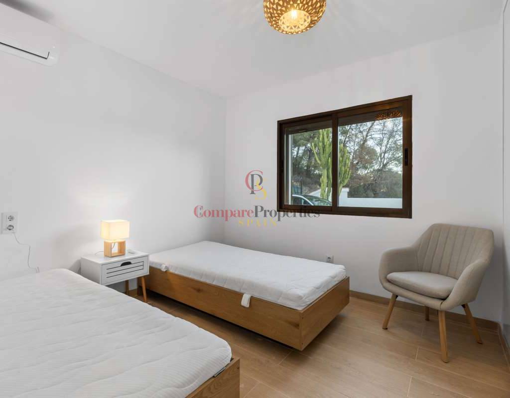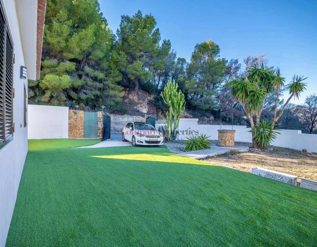 Diese charmante, ebenerdige Villa, erbaut 1982 auf einem großzügigen 787 m² großen Grundstück, wurde Ende 2025 umfassend renoviert und vereint modernen Komfort mit zeitlosem mediterranem Charme. Das Anwesen verfügt über eine private Garage und ausreichend Parkplätze für mehrere Fahrzeuge, was optimale Erreichbarkeit und Komfort gewährleistet. Der Außenbereich lädt zum Entspannen und sonnigen Wohnen ein: eine geräumige Terrasse, ein erfrischender privater Pool und ein atemberaubender Panoramablick bilden die perfekte Kulisse für lange Sommertage und laue Abende. Im Inneren empfängt Sie ein helles und einladendes Ambiente. Das Wohnzimmer ist den ganzen Tag über lichtdurchflutet, und die Küche bietet direkten Zugang zur Terrasse und zum Poolbereich – ideal für ein fließendes Wohngefühl zwischen Innen und Außen. Die Villa verfügt über drei Schlafzimmer, die sich zwei komfortable Badezimmer teilen und somit eine praktische Raumaufteilung für Familien oder Gäste bieten. Zur modernen Ausstattung gehören eine Klimaanlage mit Heiz- und Kühlfunktion sowie ein elektrischer Warmwasserboiler, die ganzjährigen Komfort garantieren. Diese renovierte Villa, eine harmonische Verbindung von Komfort, Eleganz und Panoramablick, ist bezugsfertig und lädt zum Wohlfühlen ein. Ob als dauerhafter Wohnsitz oder Feriendomizil – sie verspricht einen entspannten mediterranen Lebensstil inmitten unvergesslicher Natur.