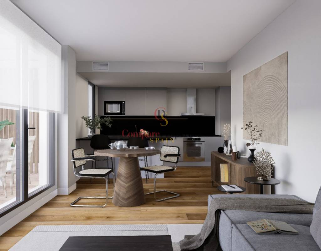 Großes Wohnzimmer-Esszimmer: Ein beeindruckender und sehr großzügiger Raum, perfekt geeignet für Unterhaltungen und Familienleben, mit direktem Zugang zu den Terrassen.Funktionale Küche: Eine gut proportionierte Küche, ergänzt durch eine praktische Abstellkammer.Flexible Unterbringung: Diese Ebene umfasst zwei geräumige Schlafzimmer, die durch ein Badezimmer und eine zusätzliche Gästetoilette (Abstellraum) versorgt werden.Außenintegration: Genießen Sie eine perfekte Verbindung von Innen und Außen mit einer großzügigen geschlossenen Terrasse und einer offenen Terrasse, ideal, um das mediterrane Klima zu genießen.