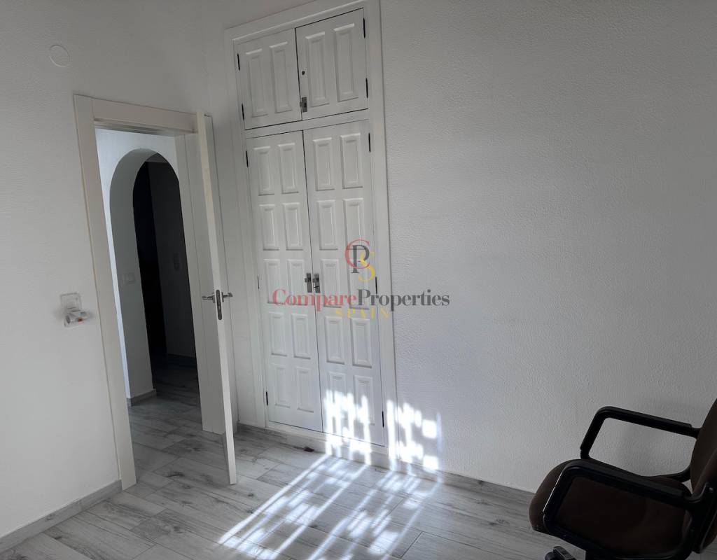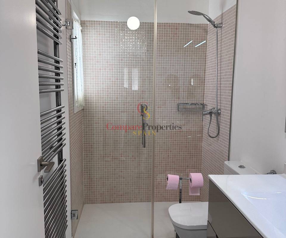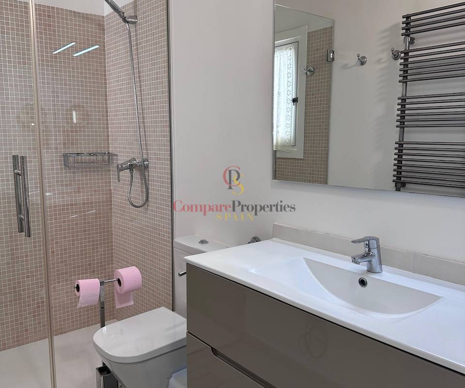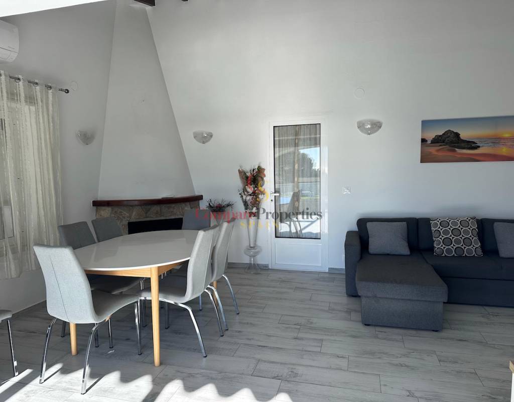 Die Villa verfügt über drei Schlafzimmer, die alle mit Klimaanlage ausgestattet sind, ein renoviertes Badezimmer mit begehbarer Dusche und ein zusätzliches Gäste-WC. Die Aufteilung ist sowohl für das dauerhafte Wohnen als auch für den Urlaub ideal, da alle wichtigen Wohnbereiche bequem auf einer Ebene angeordnet sind.