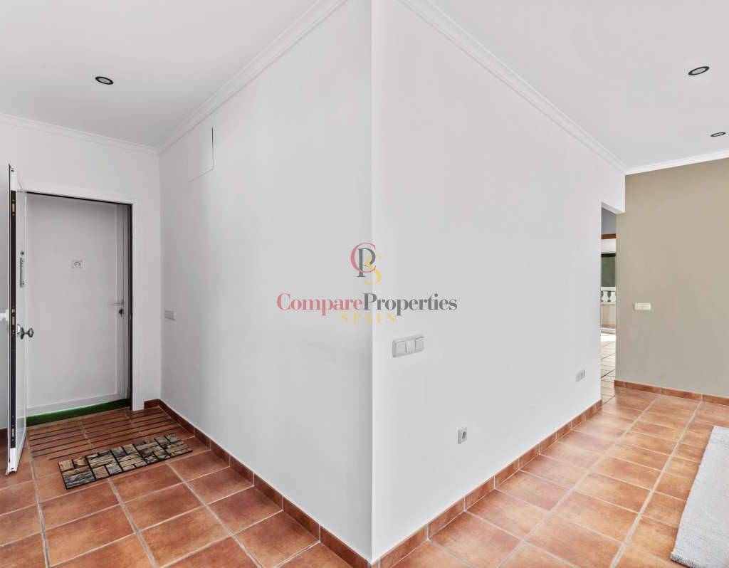 Diese Wohnung in ruhiger Wohnlage vereint Wohnkomfort mit mediterranem Lebensstil. Bars, Restaurants und eine Bushaltestelle sind fußläufig erreichbar, und das Meer ist nur wenige Autominuten entfernt. Die Gegend eignet sich ideal sowohl zum dauerhaften Wohnen als auch als Ferienwohnung und bietet Ruhe, gute Anbindung und alle wichtigen Einrichtungen in unmittelbarer Nähe. Die 2005 erbaute Wohnung profitiert von ihrer Südwestausrichtung, die für warmes Nachmittagslicht und wunderschöne Sonnenuntergänge sorgt. Mit einer Wohnfläche von 85 m² bietet sie einen ausgewogenen Grundriss mit großzügigen Außenbereichen. Sie betreten die Wohnung durch einen einladenden Flur. Rechts befindet sich die separate Küche, gefolgt von einem hellen und komfortablen Wohnzimmer. Vom Wohnbereich führen große Schiebetüren auf eine geräumige Terrasse und schaffen so einen fließenden Übergang zwischen Innen- und Außenbereich – perfekt zum Entspannen, Essen oder für gesellige Stunden. Weiter im Flur befinden sich drei Schlafzimmer und ein Badezimmer. Zwei der Schlafzimmer bieten direkten Zugang zur großen Terrasse und sind daher lichtdurchflutet und frisch. Die Bauweise des Gebäudes ermöglicht eine flexible Raumaufteilung und bietet dem zukünftigen Eigentümer die Möglichkeit, die Räumlichkeiten nach persönlichem Geschmack und individuellen Bedürfnissen anzupassen oder zu modernisieren. Die Wohnung verfügt außerdem über einen Hauswirtschaftsraum mit Waschmaschine und elektrischem Warmwasserboiler, was den Alltag erleichtert. Ein helles, vielseitig nutzbares Zuhause mit großzügigem Außenbereich – ideal, um die Sonne der Costa Blanca das ganze Jahr über zu genießen.