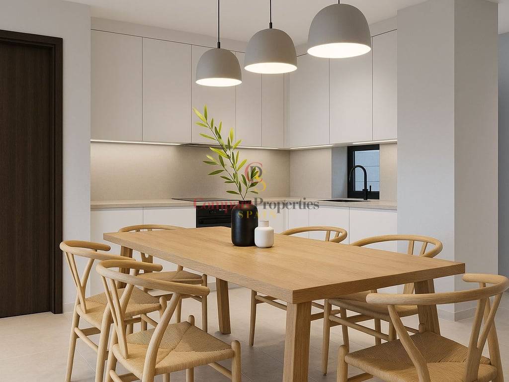 Die moderne offene Küche ist ein Traum für Kochliebhaber. Dieses Konzept fördert die soziale Interaktion, sodass Sie kochen können, während Sie besondere Momente mit Freunden und Familie teilen. Das Design ist funktional und hell und schafft eine angenehme Atmosphäre, um Ihre kulinarische Kreativität zu entfalten.