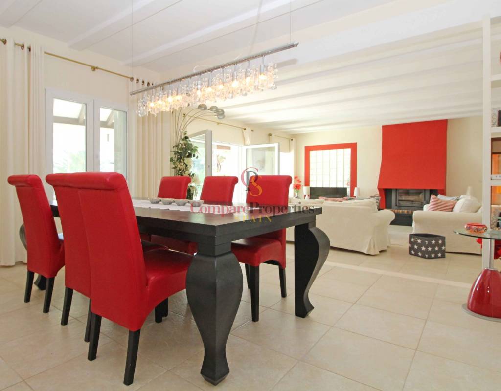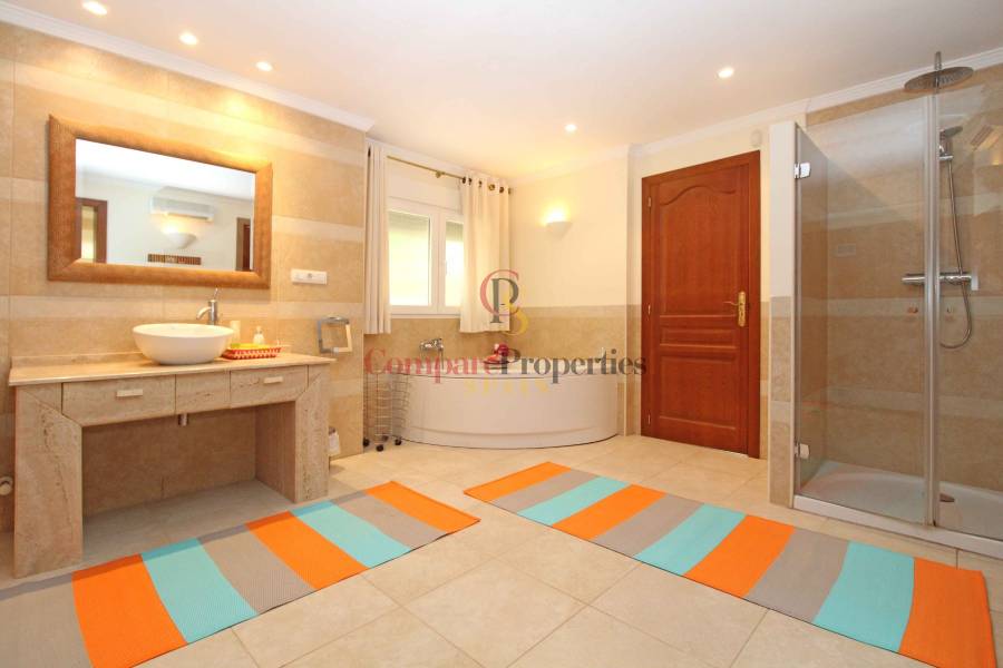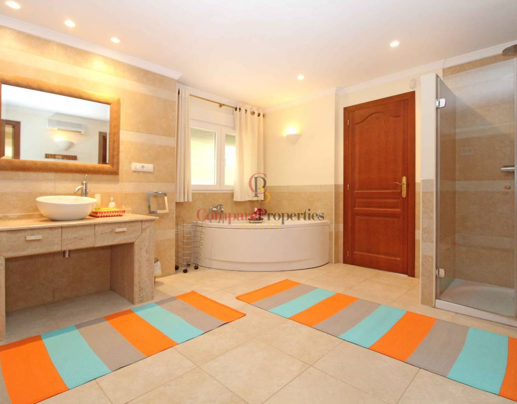 La villa está situada en una parcela generosa en una de las mejores ubicaciones en la popular zona de San Jaime de Moraira. San Jaime es una hermosa zona residencial en la frontera de Moraira y Benissa. Una zona muy tranquila, pero cerca del animado pueblo de Moraira (6 minutos en coche). A 1,5 km hay un gran supermercado con selección internacional. Las playas de Moraira se puede llegar en pocos minutos en coche el campo de golf está a 1 km de la villa.