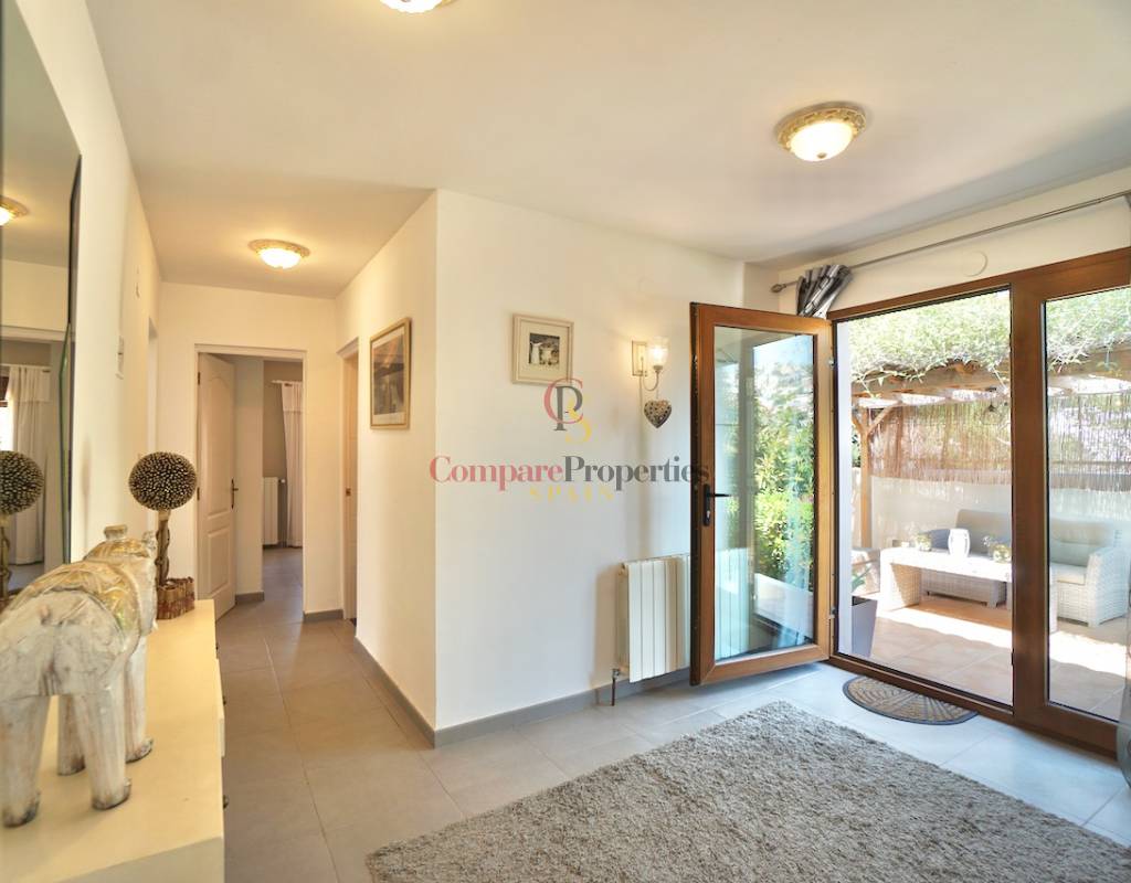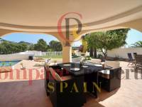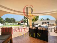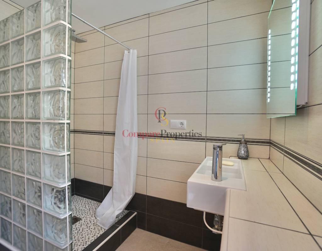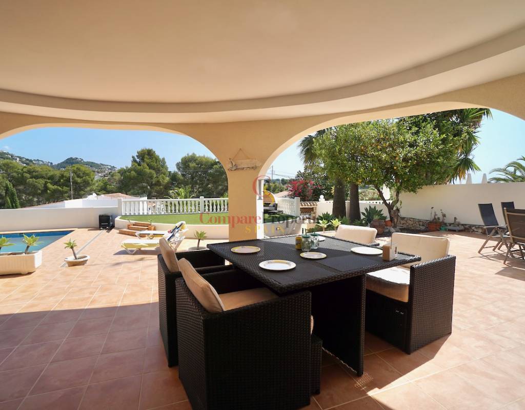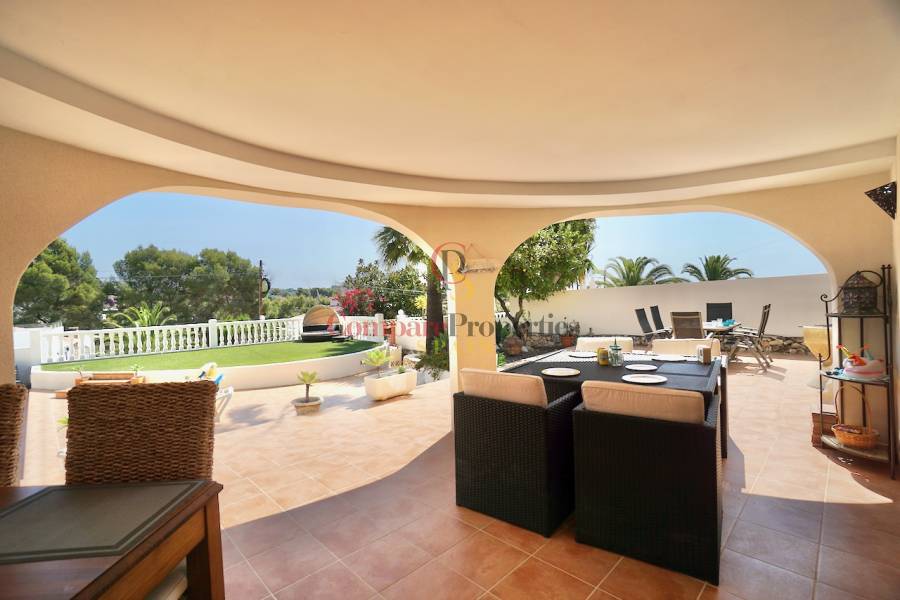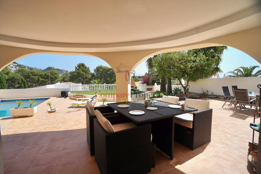 El garaje doble está a nivel de calle con espacio para dos coches y también almacenamiento. A través de una puerta peatonal tomamos varios pasos hacia arriba y llegar a la gran terraza de la piscina en frente de la villa. Hay mucho espacio para relajarse en las tumbonas junto a la gran piscina rectangular de 10 x 4m2 y aquí disfrutará del sol durante todo el día. La piscina tiene un sistema de calefacción para que pueda utilizarlo durante todo el año y hay una ducha de la piscina conveniente al final de la terraza. Cerca hay una barbacoa y zona de comedor o si prefiere un lugar con sombra para refugiarse del sol del verano, una Naya cubierta abierta que también está preparada para comer al aire libre. Perfecto para recibir a familiares y amigos junto a la piscina.