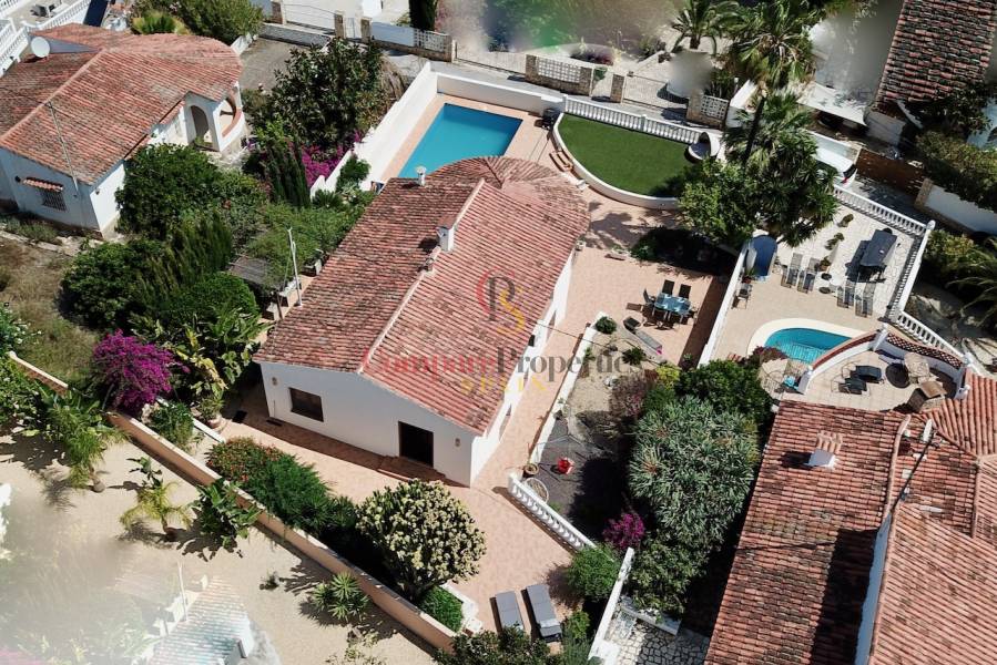 4 dormitorios / 2 bañosPISCINA rectangular 10 x 4 m2 (puede ser climatizada) con ducha junto a la piscinaApartamento de invitados independienteGaraje doble con trasteroAire acondicionado frío/calor (parcial)Calefacción central de gas, radiadores en todo / estufa de leñaPreciosas vistas abiertas con una pequeña vista al marA poca distancia de servicios, restaurantes, instalaciones deportivas y playas localesEspacioso y en excelentes condicionesBonito jardín con sistema de riegoListo para entrar a vivir