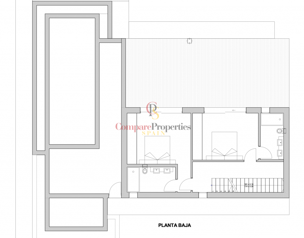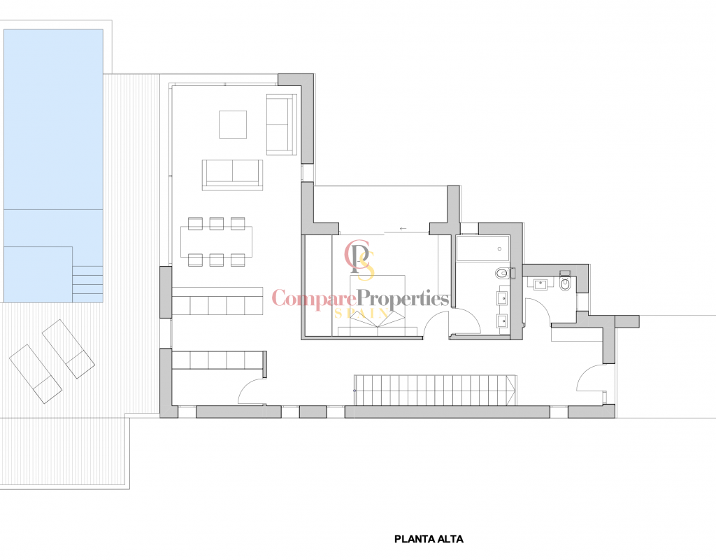 Esta villa es un diseño de dos niveles con 3 dormitorios en suite y un aseo de invitados. Un moderno y bonito diseño ofrece una amplia y moderna cocina abierta al salón, con acceso directo a la terraza. Un bonito salón tiene acceso a la terraza con 48m2 y con una impresionante piscina infinita con impresionantes vistas al Peñón Ifach y al mar. También en el nivel principal se encuentra el dormitorio principal en suite con vistas abiertas al peñón y al mar.