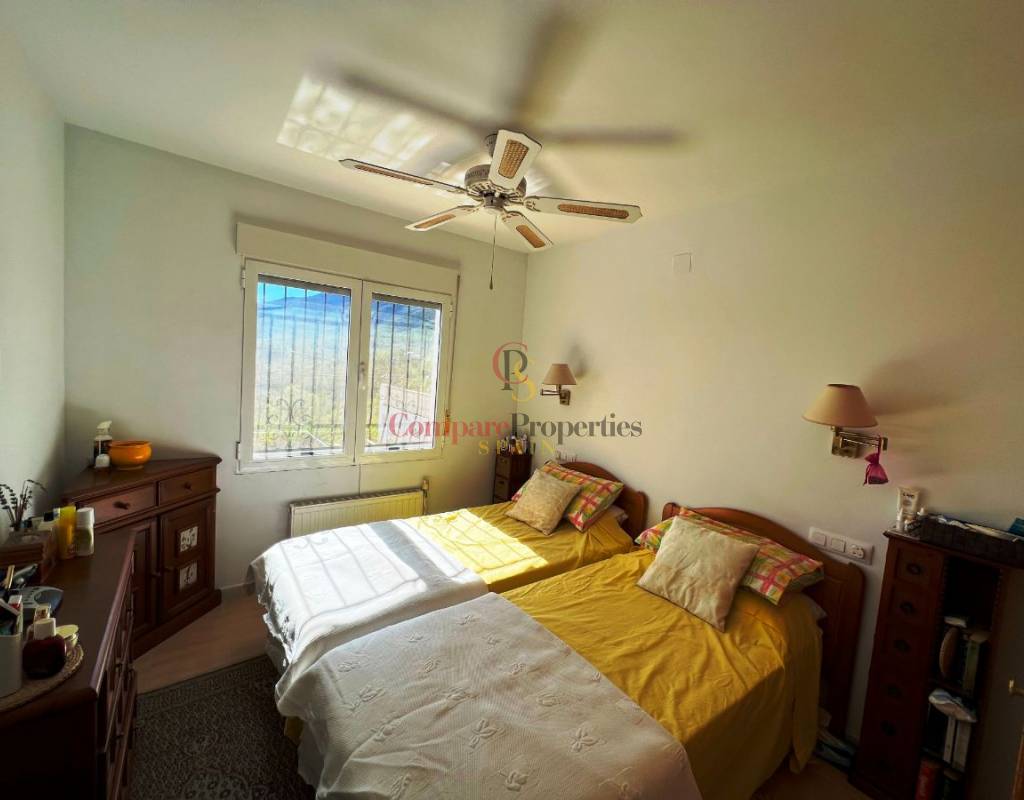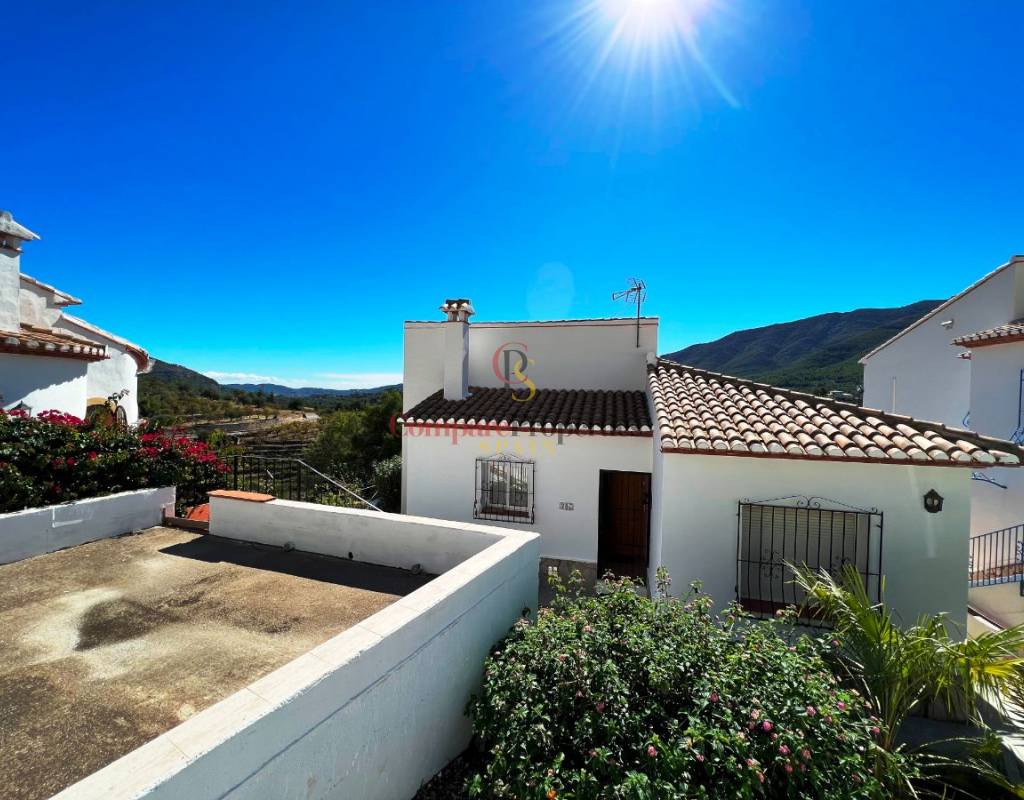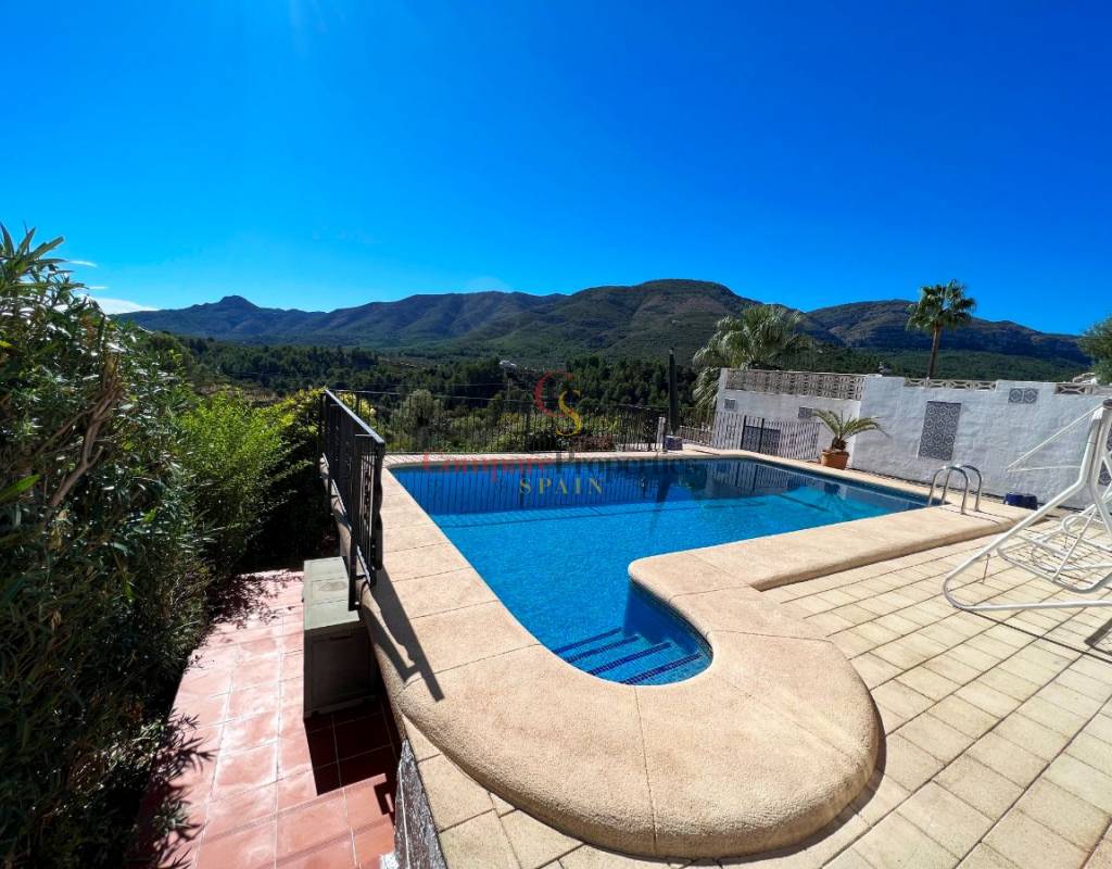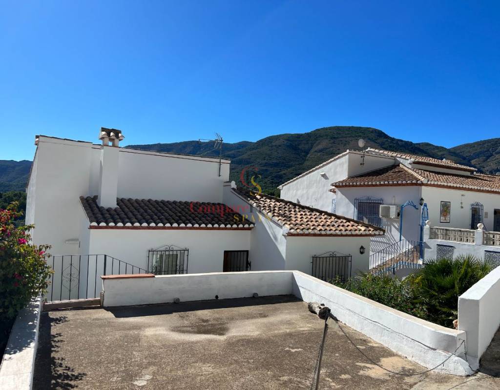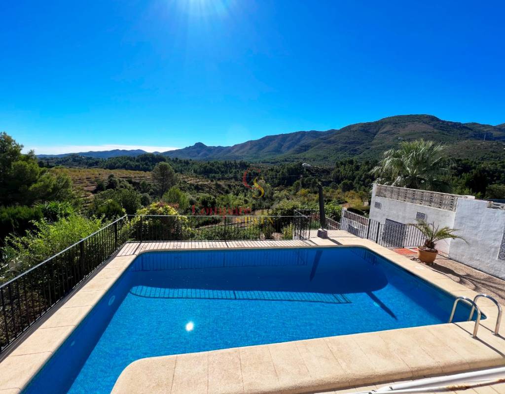 Primera línea, villa independiente con fabulosas vistas orientadas al sur a través del valle de Jalón. El alojamiento consta de un vestíbulo de entrada que conduce a una cocina abierta de estilo americano equipada, un salón comedor con chimenea de piedra Tosca, techos con vigas de madera, puerta exterior que conduce a una naya cubierta privada con fantásticas vistas sobre el valle y sobre la piscina y la terraza. Perfecto para cenar al aire libre. Hay un pasillo, con almacenamiento, a un dormitorio doble con armarios empotrados, un baño familiar, un dormitorio doble con armarios empotrados, y un cuarto de ducha. En el exterior hay una piscina de 8 x 4 m2 con una zona de solárium privada con azulejos que desvían el calor, una barbacoa incorporada y una terraza de nivel inferior con jardines mediterráneos, llena de arbustos, flores y su propia parra. Todo el jardín tiene su propio sistema de riego. La propiedad se encuentra en un tranquilo callejón sin salida. Esta propiedad se beneficia de la calefacción central de gas, doble acristalamiento, aislamiento de la pared de la cavidad, mosquiteros, aparcamiento en la calle, y el almacenamiento. Ver es muy recomendable para apreciar la primera línea, wow factor de puntos de vista.