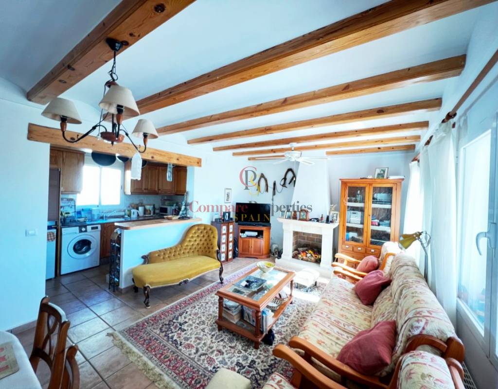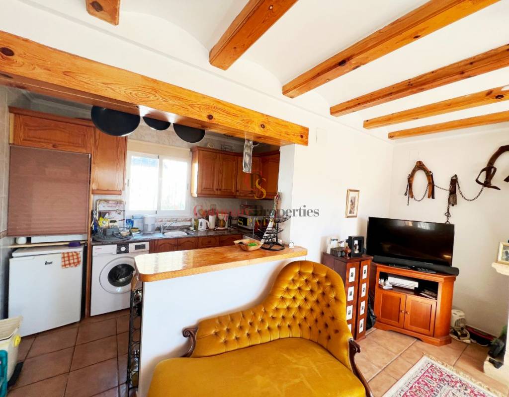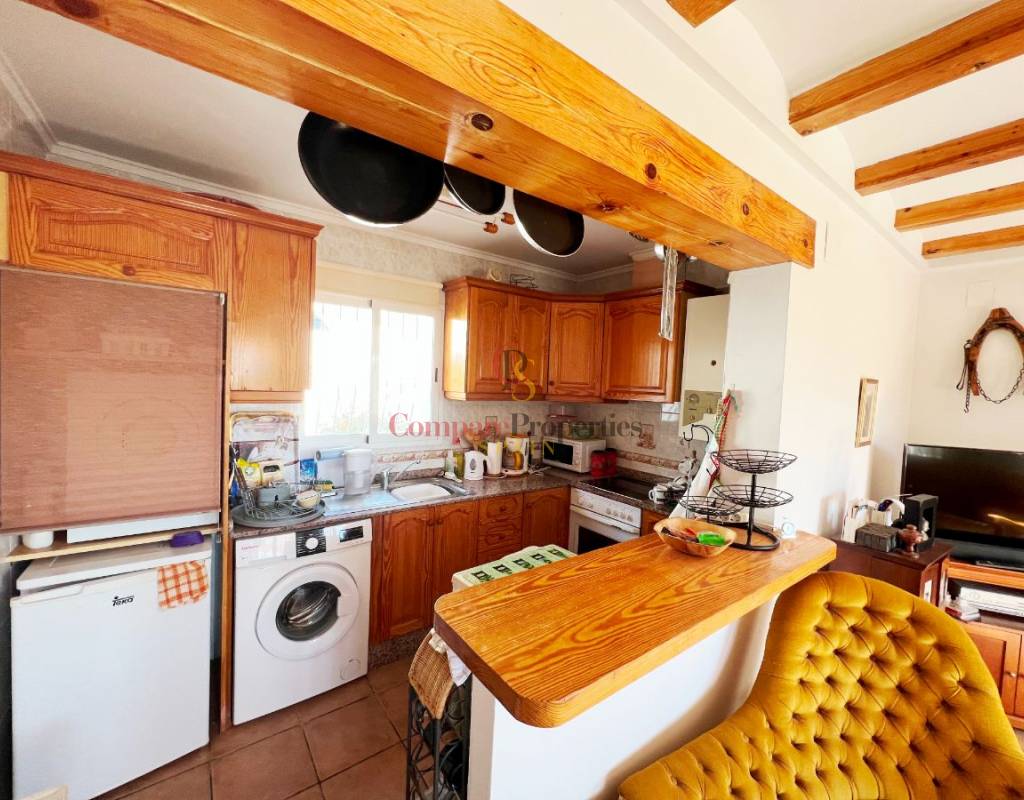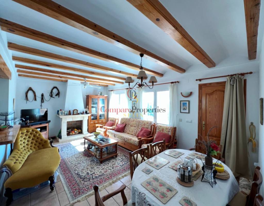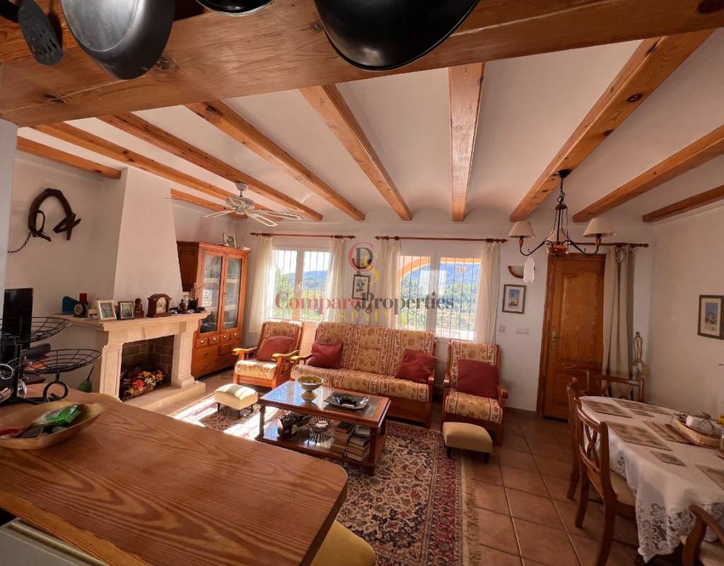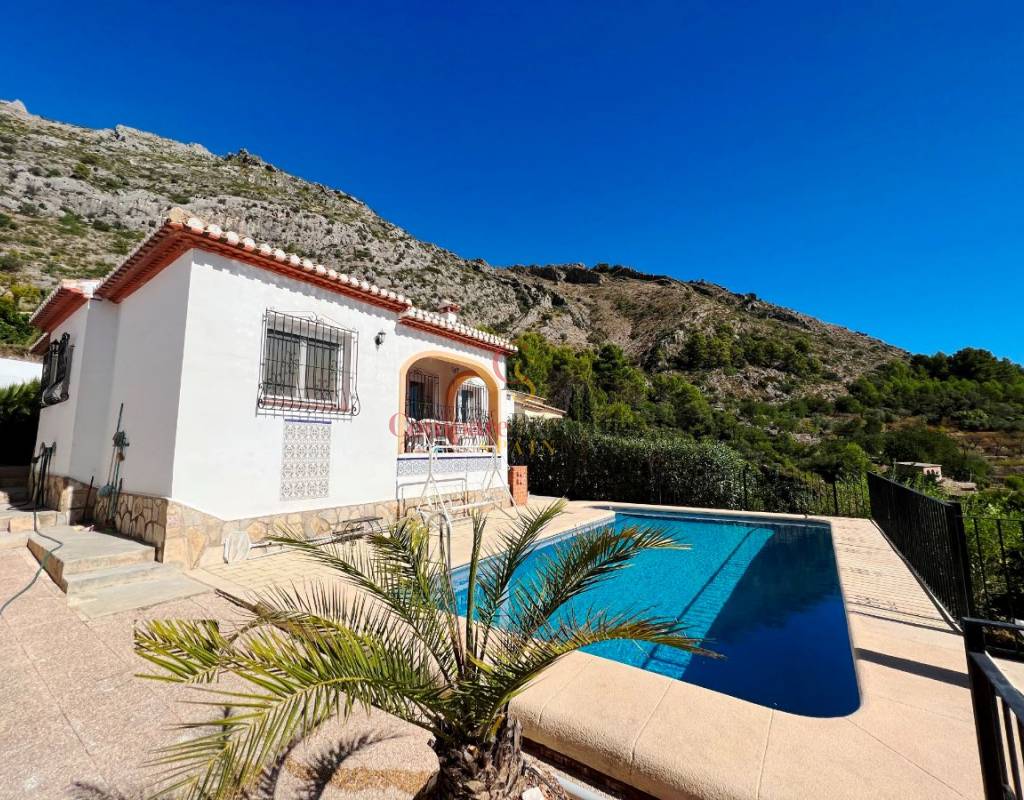 Primera línea, villa independiente con fabulosas vistas orientadas al sur a través del valle de Jalón. El alojamiento consta de un vestíbulo de entrada que conduce a una cocina abierta de estilo americano equipada, un salón comedor con chimenea de piedra Tosca, techos con vigas de madera, puerta exterior que conduce a una naya cubierta privada con fantásticas vistas sobre el valle y sobre la piscina y la terraza. Perfecto para cenar al aire libre. Hay un pasillo, con almacenamiento, a un dormitorio doble con armarios empotrados, un baño familiar, un dormitorio doble con armarios empotrados, y un cuarto de ducha. En el exterior hay una piscina de 8 x 4 m2 con una zona de solárium privada con azulejos que desvían el calor, una barbacoa incorporada y una terraza de nivel inferior con jardines mediterráneos, llena de arbustos, flores y su propia parra. Todo el jardín tiene su propio sistema de riego. La propiedad se encuentra en un tranquilo callejón sin salida. Esta propiedad se beneficia de la calefacción central de gas, doble acristalamiento, aislamiento de la pared de la cavidad, mosquiteros, aparcamiento en la calle, y el almacenamiento. Ver es muy recomendable para apreciar la primera línea, wow factor de puntos de vista.