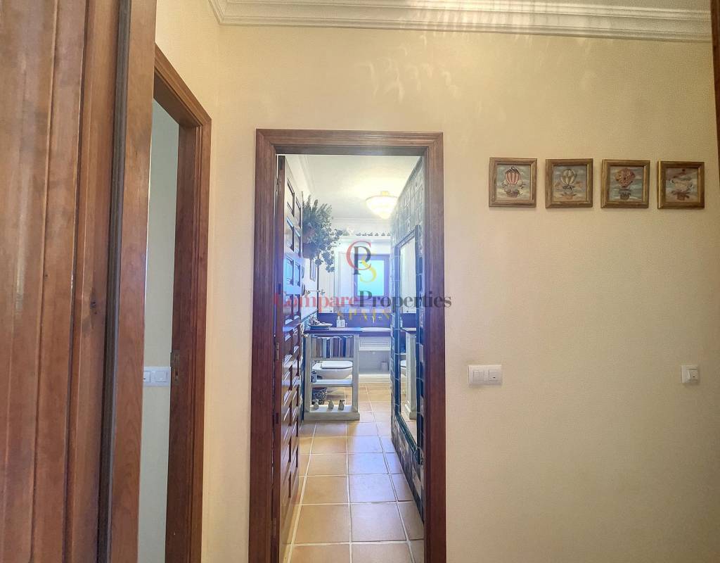 Mediante una escalera interior subimos a la segunda planta en la cual se encuentra el dormitorio principal con cuarto de baño y un enorme vestidor, así como la salida a una terraza exterior y el acceso al apartamento de invitados que también es accesible mediante una escalera independiente exterior.