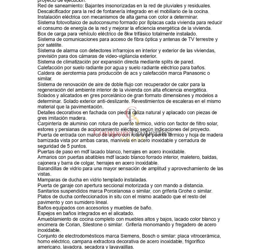 Las instalaciones incluyen mecanismos eléctricos de alta gama y un sistema fotovoltaico de autoconsumo con 8 placas solares, que permite reducir considerablemente el consumo energético. Además, cada vivienda cuenta con un box de carga trifásico de 8 kW para vehículos eléctricos, conectividad mediante fibra óptica y un sistema de alarma que protege tanto el interior como el exterior.