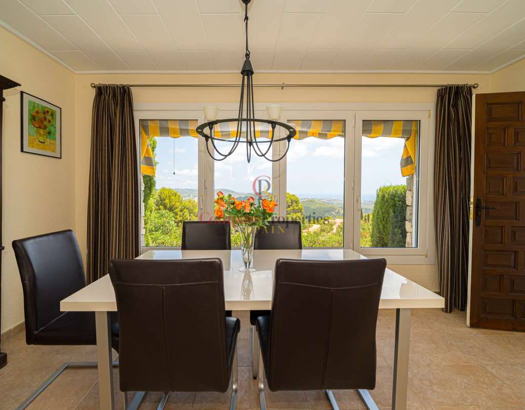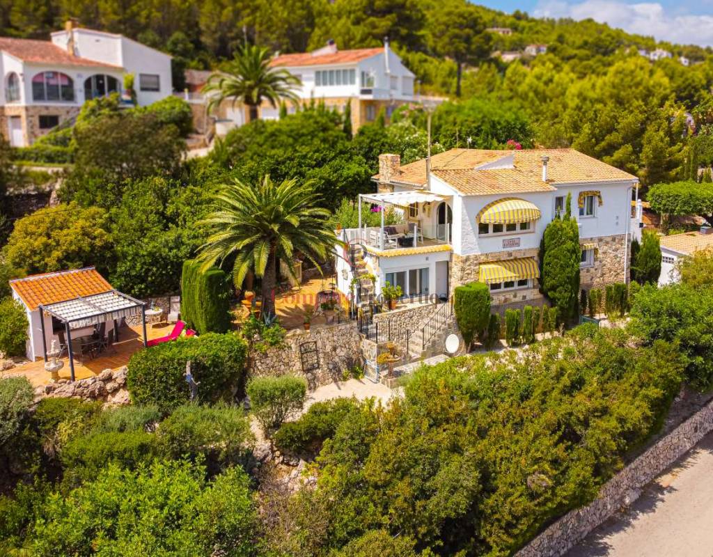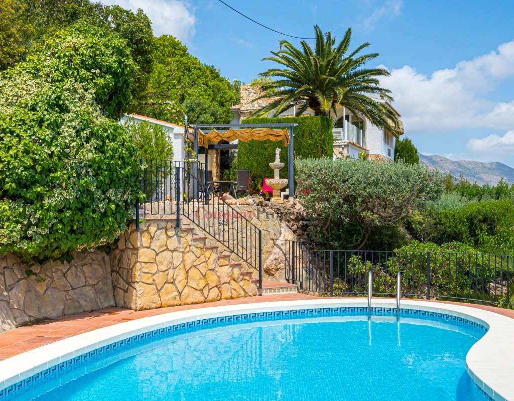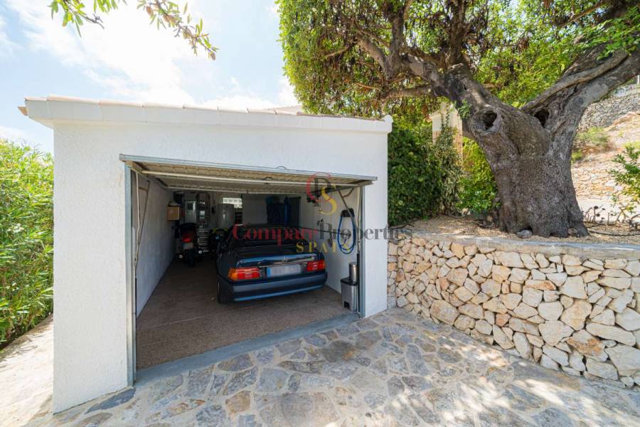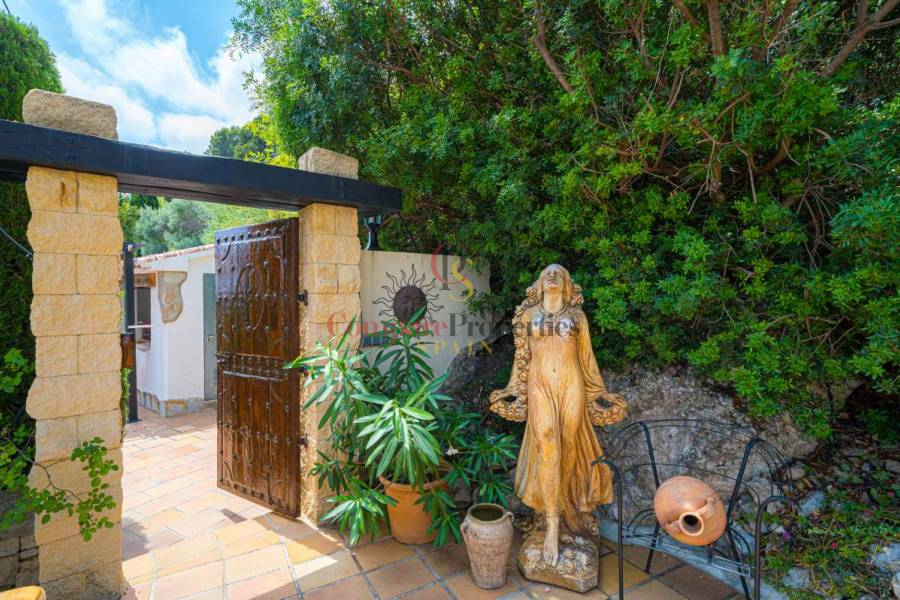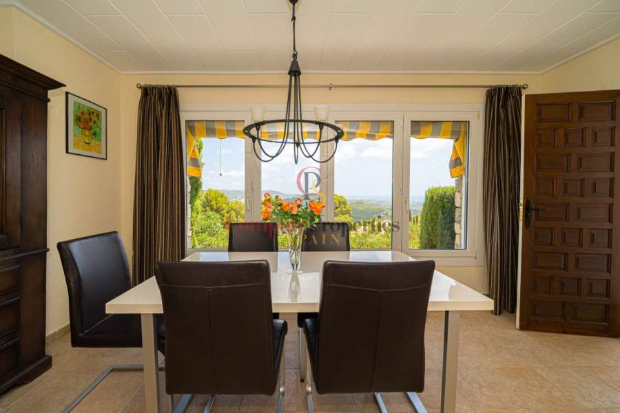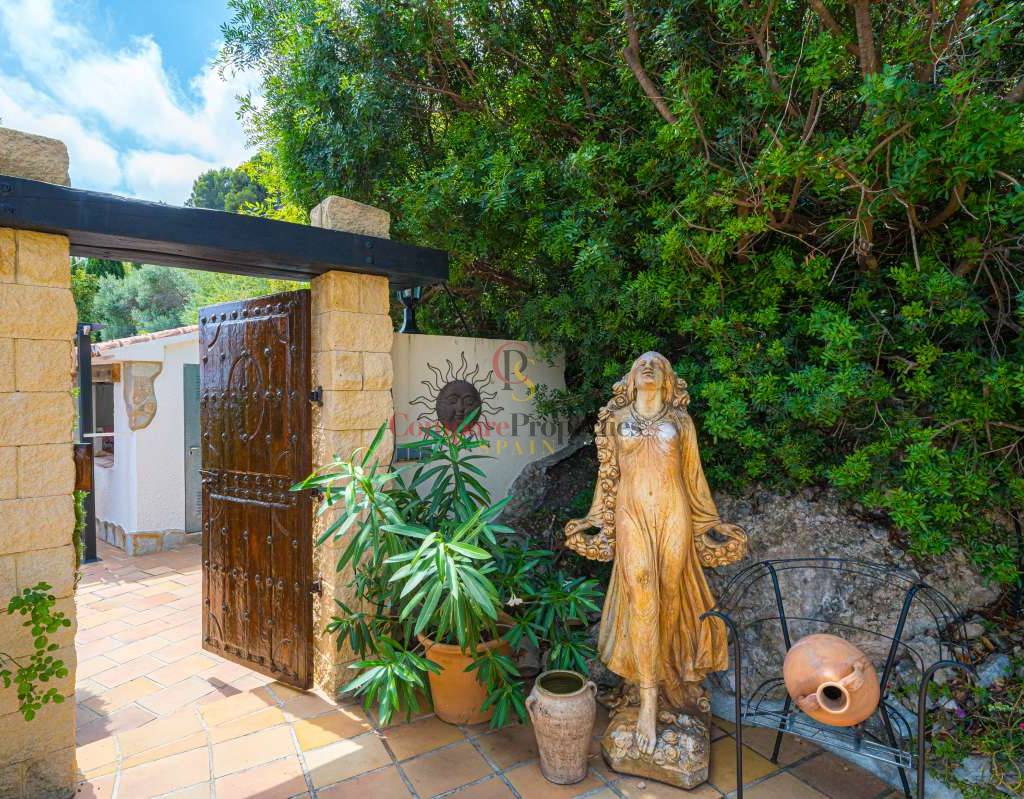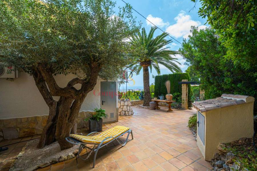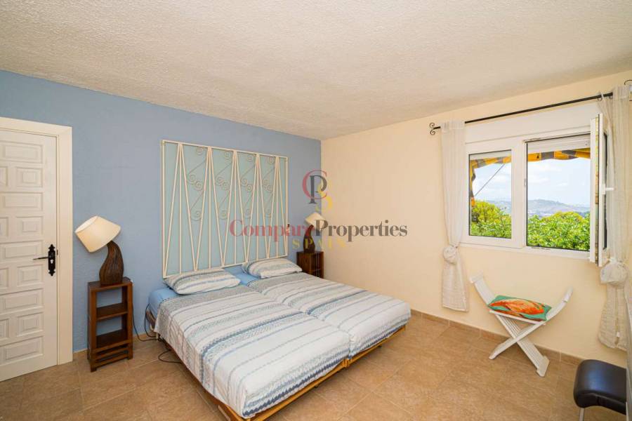 Esta hermosa villa está situada en el municipio de Benissa en la frontera de Calpe, en medio de un oasis verde de paz y sólo 6 minutos en coche del centro de Calpe y hermosas playas de arena. La villa está rodeada por el imponente paisaje montañoso d' Olta, con amplias vistas al mar Mediterráneo, incluyendo el símbolo de Calpe, la majestuosa montaña Ifach d' Peñon. La villa ofrece espectaculares vistas de Calpe, Benissa, Moraira, Teulada, entre otros, y en el fondo incluso se puede ver la montaña Montgo en Denia. La casa tiene dos unidades de vivienda, ambas con entrada propia, con varias posibilidades. Por ejemplo como actualmente se utiliza en parte (arriba) por los propietarios y en parte para alquiler abajo, (unas 48 semanas al año) o para una familia pareja mayor y niños (cada uno por separado). Como las dos plantas también están conectados internamente, por supuesto, también puede utilizar la villa como una casa unifamiliar.