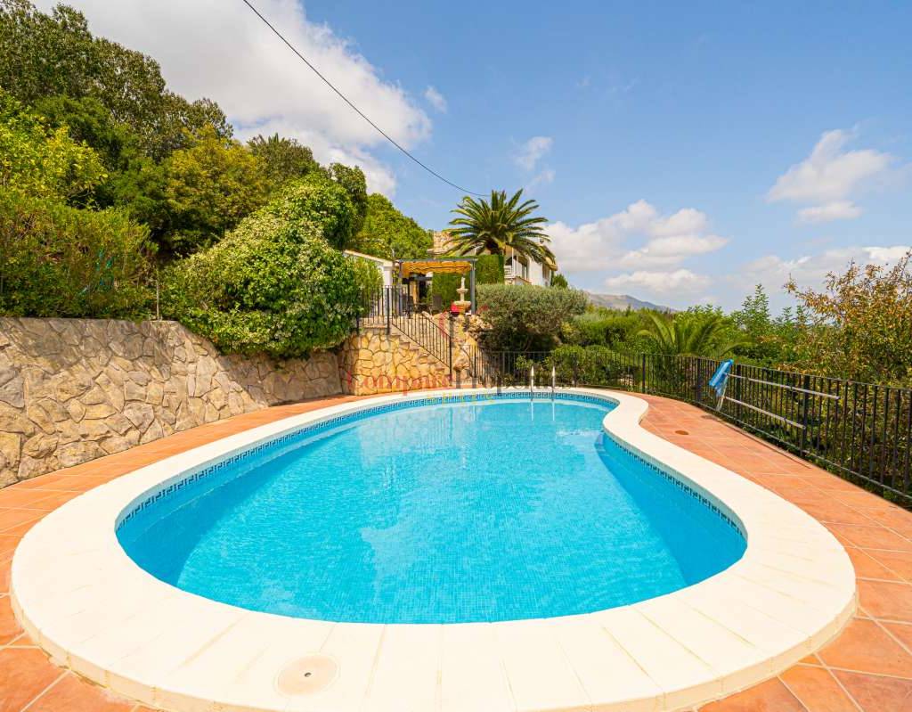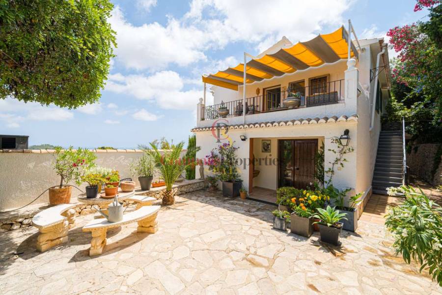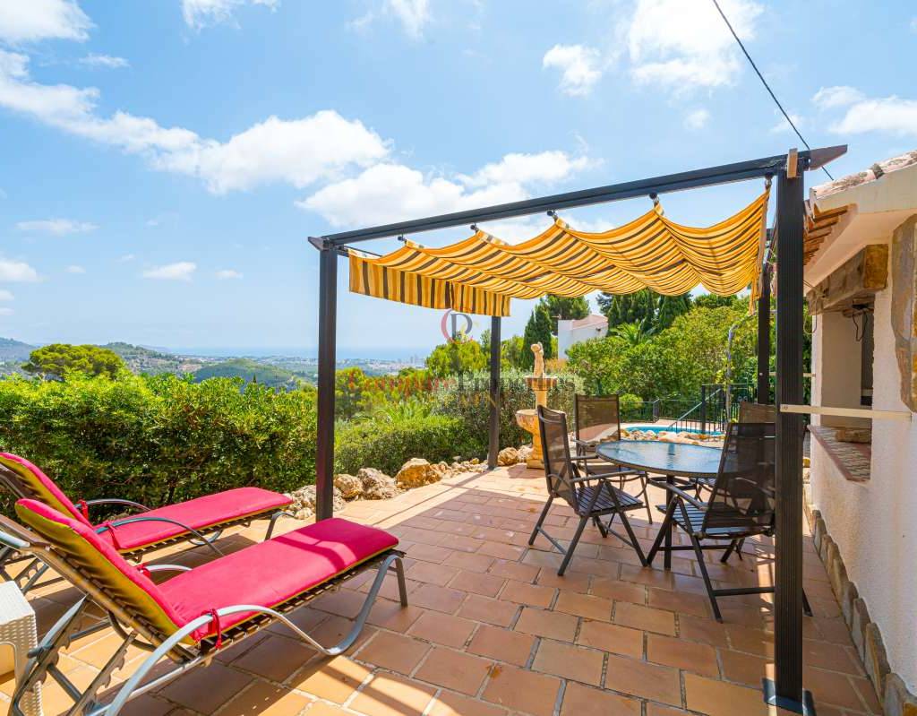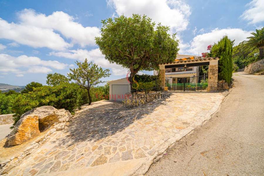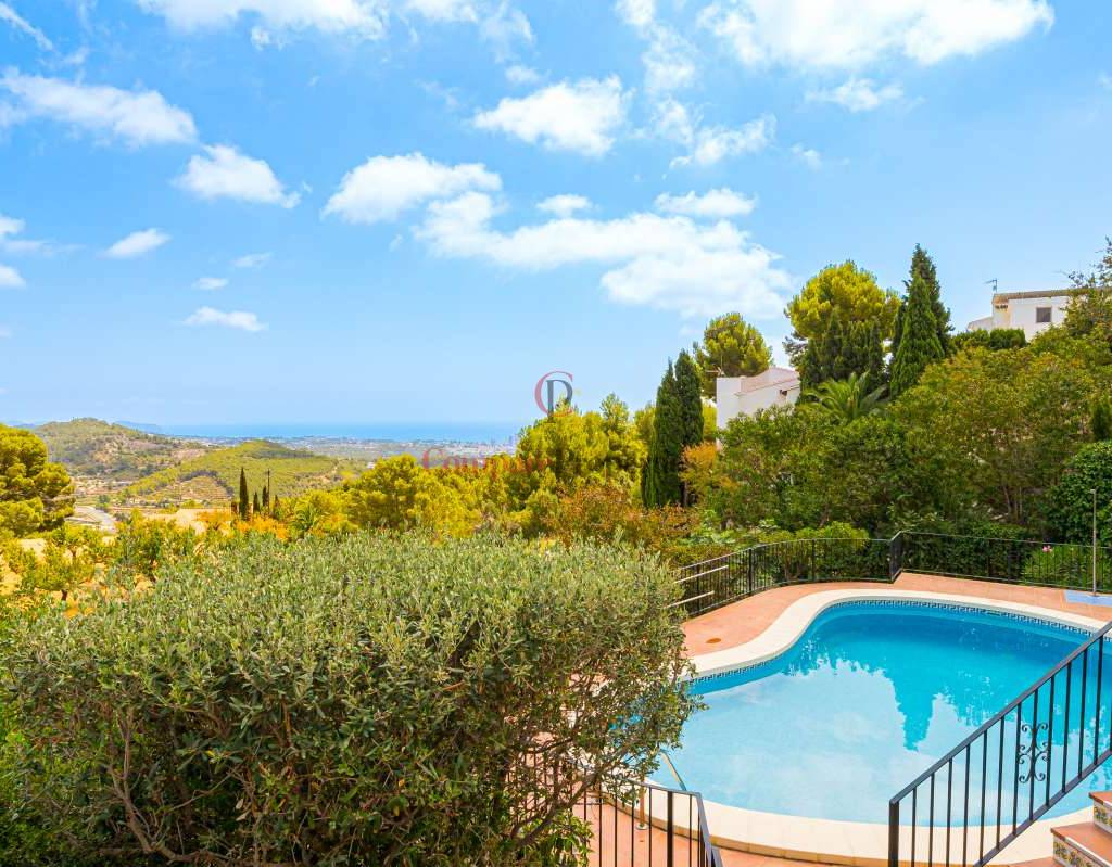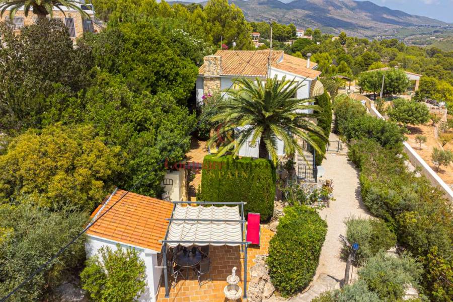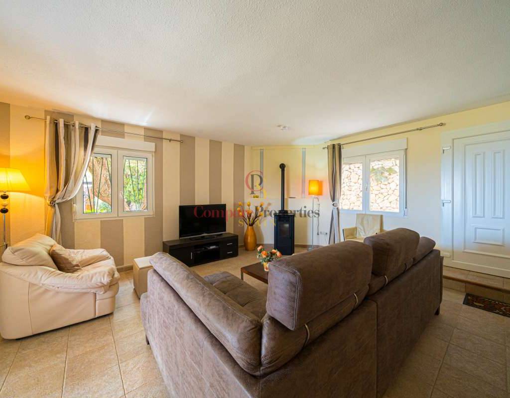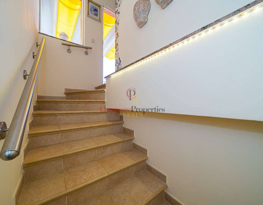 Esta hermosa villa está situada en el municipio de Benissa en la frontera de Calpe, en medio de un oasis verde de paz y sólo 6 minutos en coche del centro de Calpe y hermosas playas de arena. La villa está rodeada por el imponente paisaje montañoso d' Olta, con amplias vistas al mar Mediterráneo, incluyendo el símbolo de Calpe, la majestuosa montaña Ifach d' Peñon. La villa ofrece espectaculares vistas de Calpe, Benissa, Moraira, Teulada, entre otros, y en el fondo incluso se puede ver la montaña Montgo en Denia. La casa tiene dos unidades de vivienda, ambas con entrada propia, con varias posibilidades. Por ejemplo como actualmente se utiliza en parte (arriba) por los propietarios y en parte para alquiler abajo, (unas 48 semanas al año) o para una familia pareja mayor y niños (cada uno por separado). Como las dos plantas también están conectados internamente, por supuesto, también puede utilizar la villa como una casa unifamiliar.